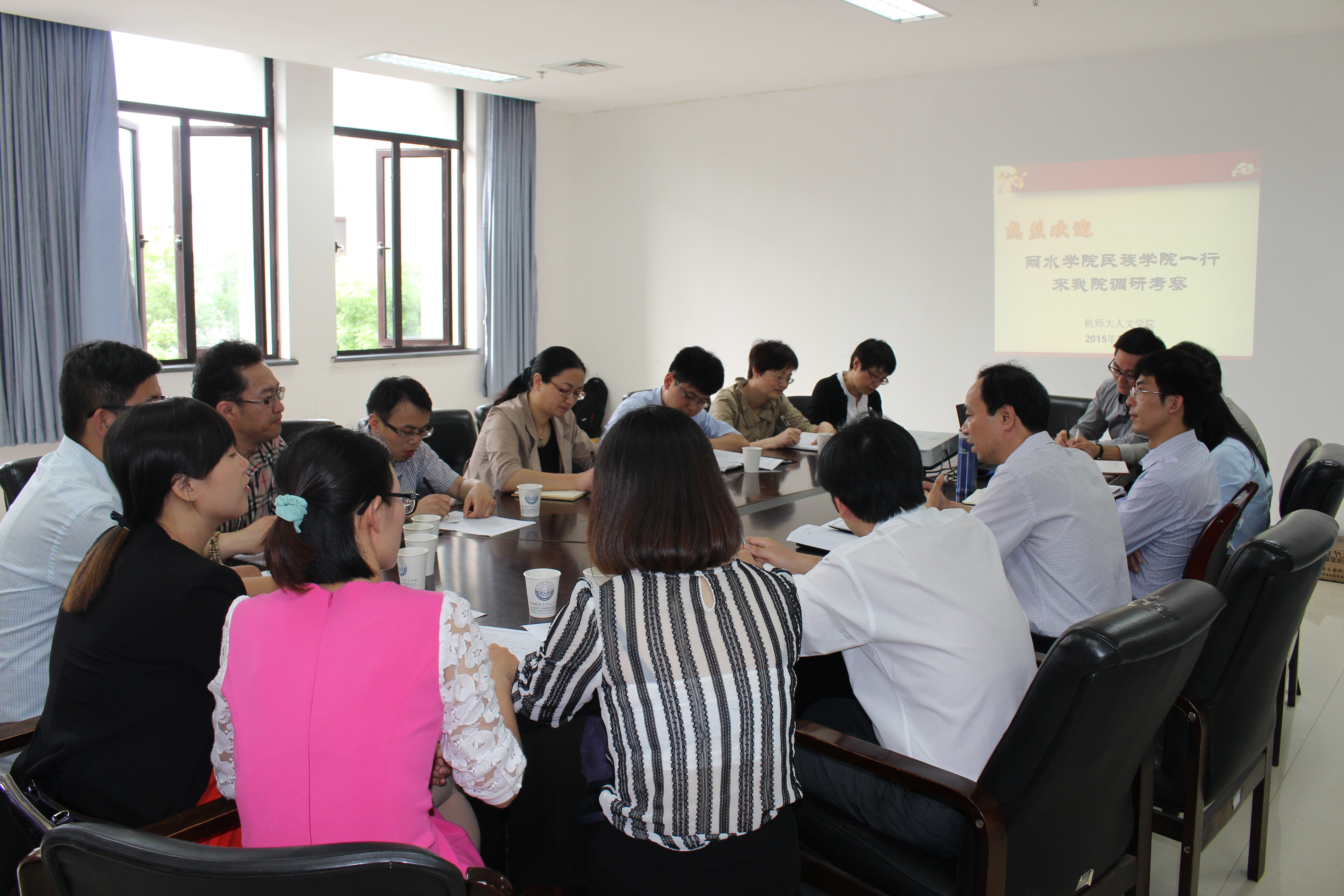 5月20日下午,丽水学院民族学院书记兰俏梅、副书记潘宇峰一行11人来欧美色情 调研党建、教学和学生工作。欧美色情 党委书记吴兴农、副院长夏卫东以及辅导员、办公室老师等参加了调研交流会。