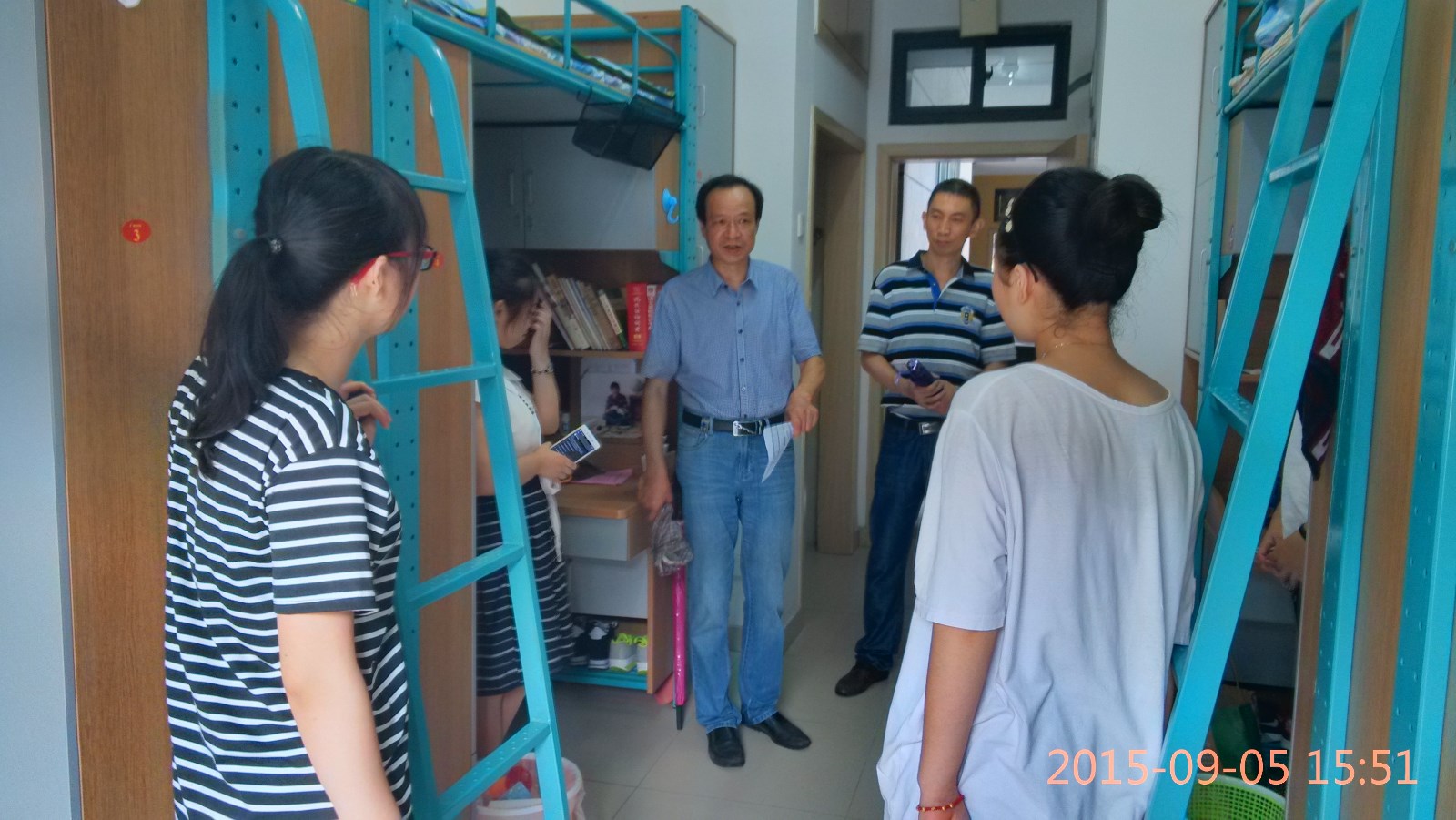 9月5日下午,欧美色情 全体党政班子领导与新生班主任、辅导员分别走访了欧美色情 2015级新生寝室,前去看望学生,送去关怀与慰问,叮嘱新生们保持安全意识,并进一步了解新生的到校和适应情况。