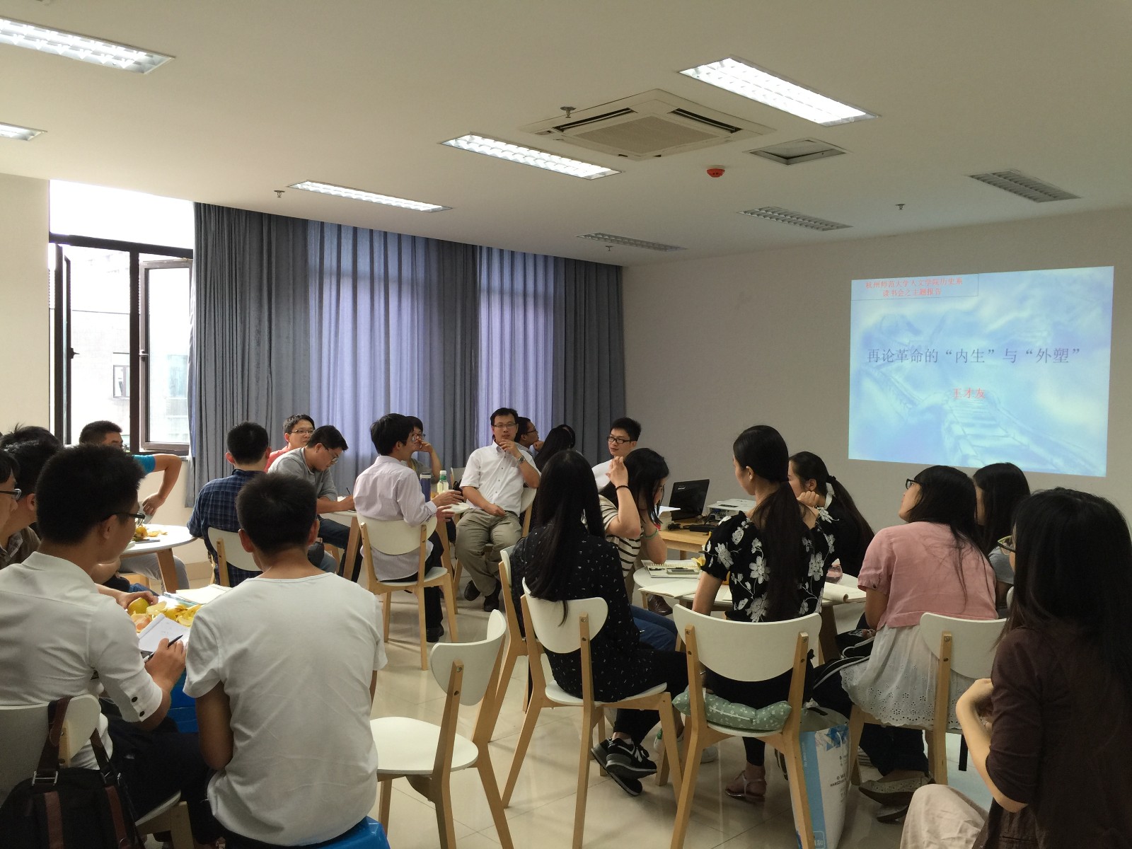 本次读书会的主题为“再论革命的‘内生’与‘外塑’”。王才友老师首先对国内外中国革命史的研究做了系统的梳理,介绍了外塑与内生的概念并介绍了《张力与限界:中央苏区的革命(1933-1934)》、《“中间地带”的革命》等学术前沿的著作。随后,王老师指出,无论外塑还是内生任何一个因素都无法单方面解释清中国革命。对于这一瓶颈应当如何突破,王老师提出了自己的看法,即可以从中国共产党的角色出发,从各地方基层的革命与当地各方势力的角度出发,引发大家深入讨论。