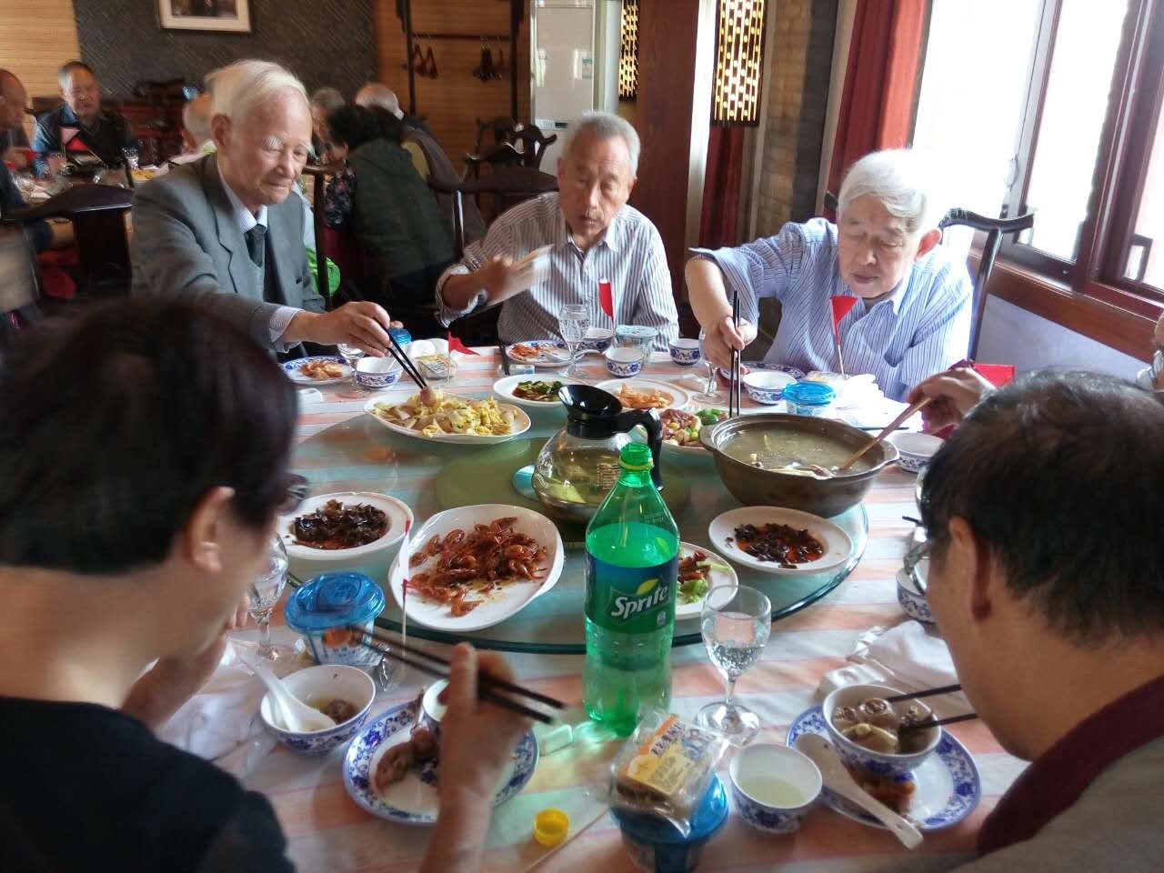 午餐时间,大巴将我们载至铜官庄,这是一处武康镇五四村的五星级农家乐,庄里小桥流水,绿树成荫,园林美景伴着村庄特色佳肴令老师们赞不绝口,而学院提前为老师们准备的五谷重阳糕和新疆酸奶等小礼物,则为他们带去了意外的小惊喜。