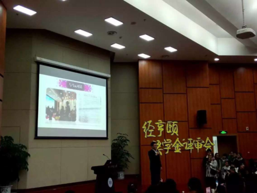 图为郭振豪同学在经亨颐奖学金评审会的答辩现场