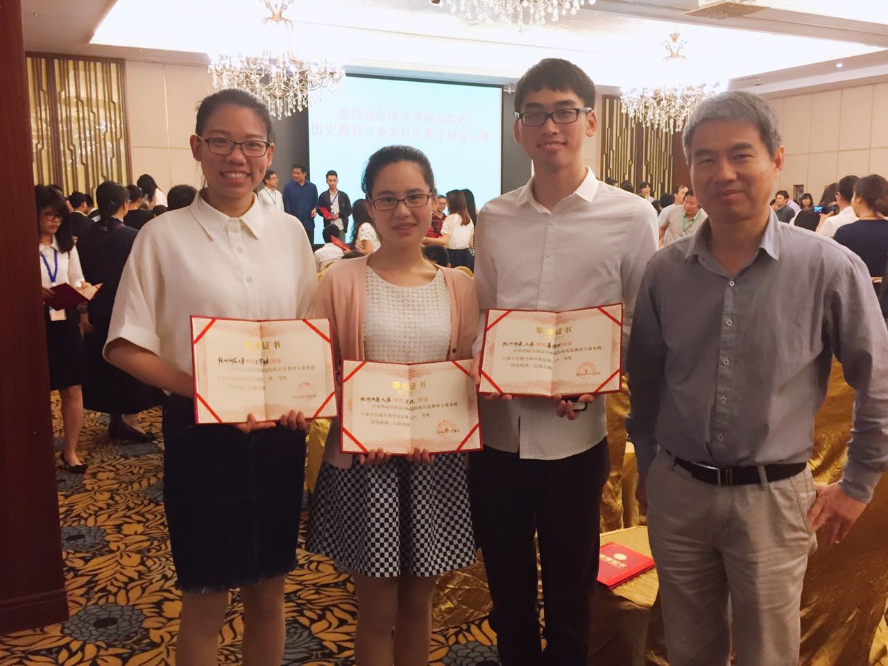 此次竞赛分为说课和讲课两种形式,规定每个学校派出三位同学参赛。欧美色情 历史系参赛的葛杨林、周欢、王梦雅三位同学均获佳绩。三位同学在比赛过程中认真对待,积极备课,表现出优秀的师范生素养、扎实的专业功底和出众的教学技能,其中葛杨林同学荣获说课一等奖、周欢同学荣获说课二等奖,王梦雅同学荣获讲课二等奖,丁贤勇老师荣获“优秀指导教师奖”。