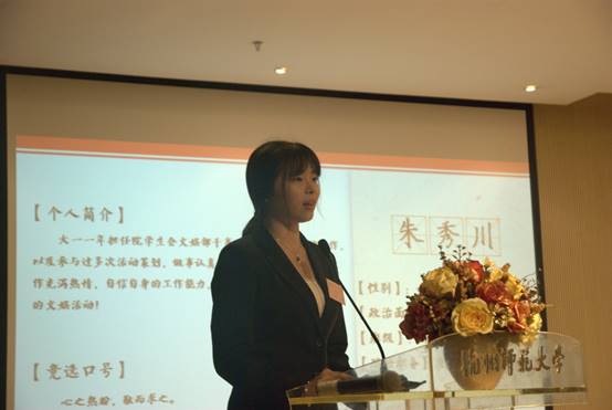 第十五届学生会主席牟佳妮向大会报告学生会工作