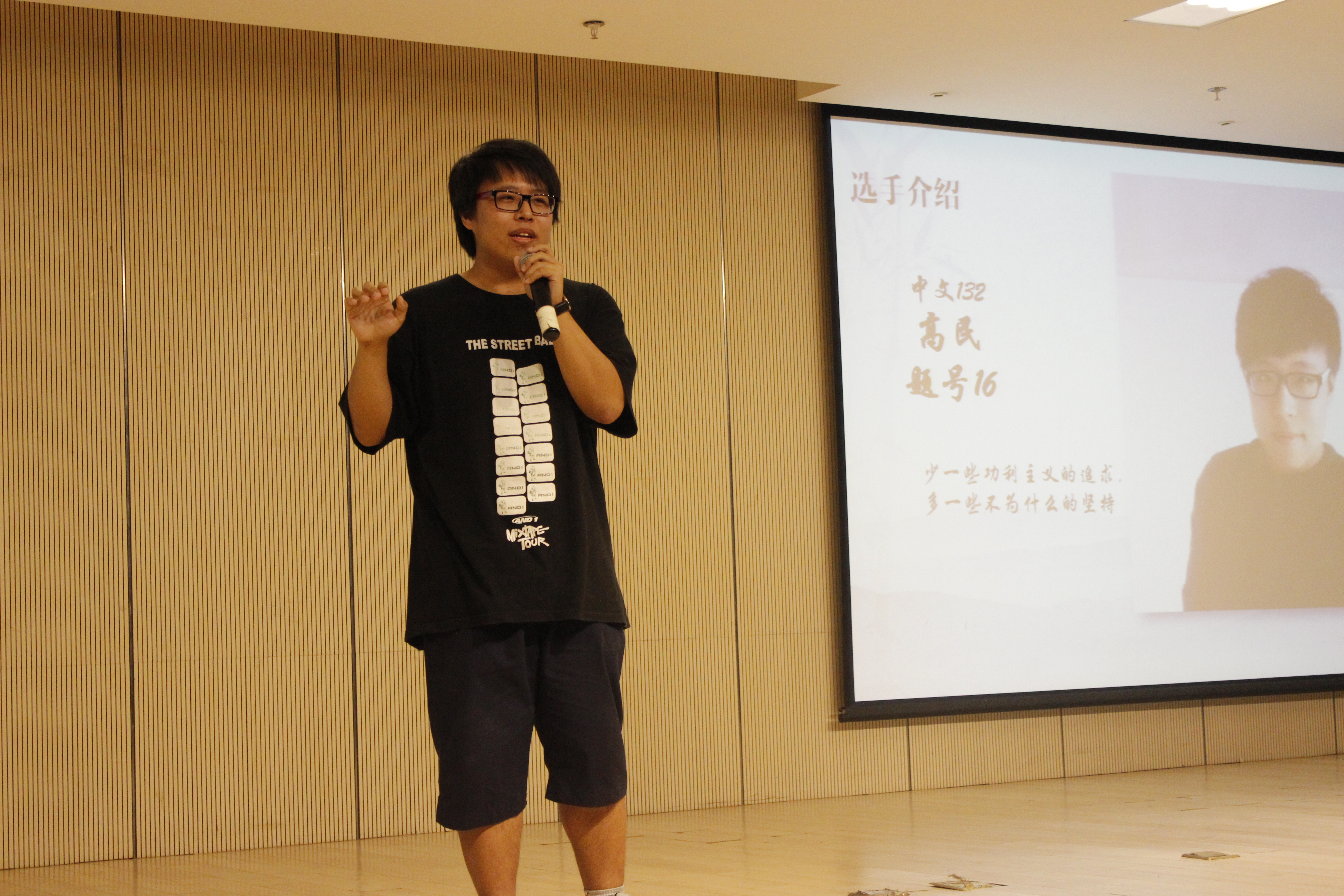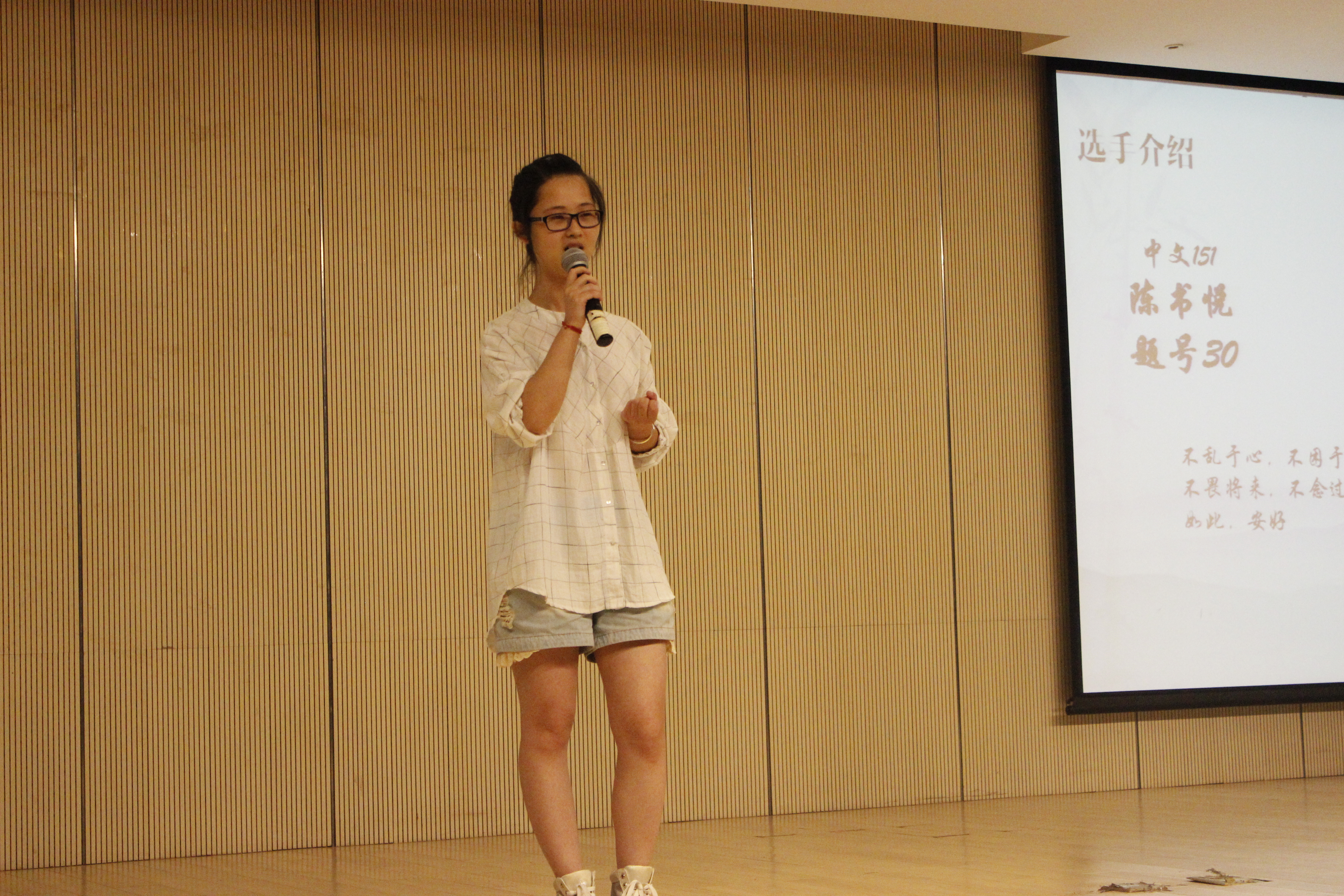 经过各班班内的选拔,每班有两名选手进入最终的比赛。上午九点,朗诵比赛正式拉开帷幕。22名选手或以动人音乐相配,或以肢体语言作辅,均向我们展示了属于他们的别样魅力。其中不乏多位选手选择相同篇目的情况,但正如刘小刚老师在点评中所说,每个人对诗的理解不同,投入的情感不同,带给观众的感受自然不同。以诗为舟,所有人在朗诵者的倾情诠释中邂逅重重风景,有清丽的江南,有如水的月夜,还有流芳百世的滕王阁。