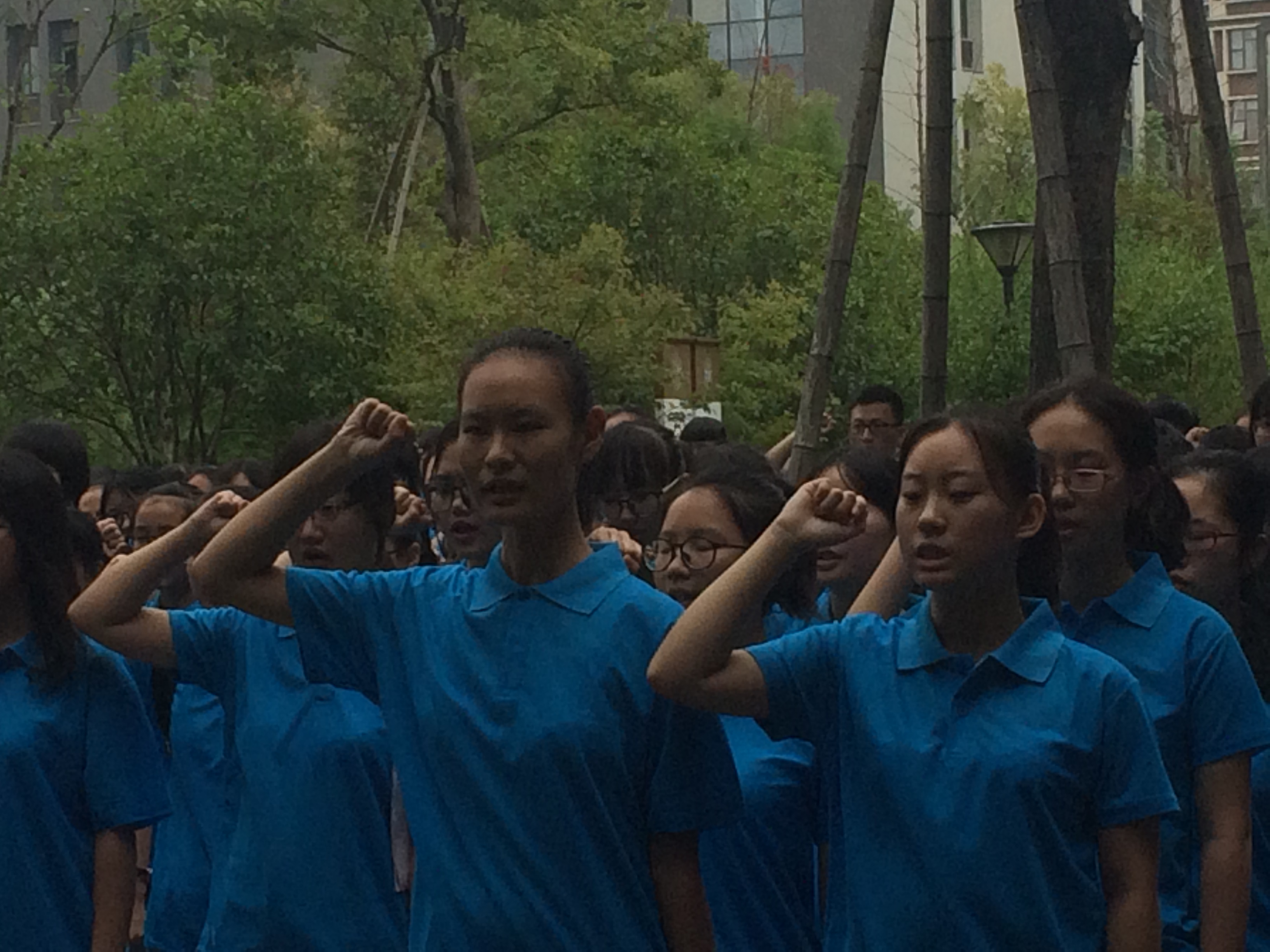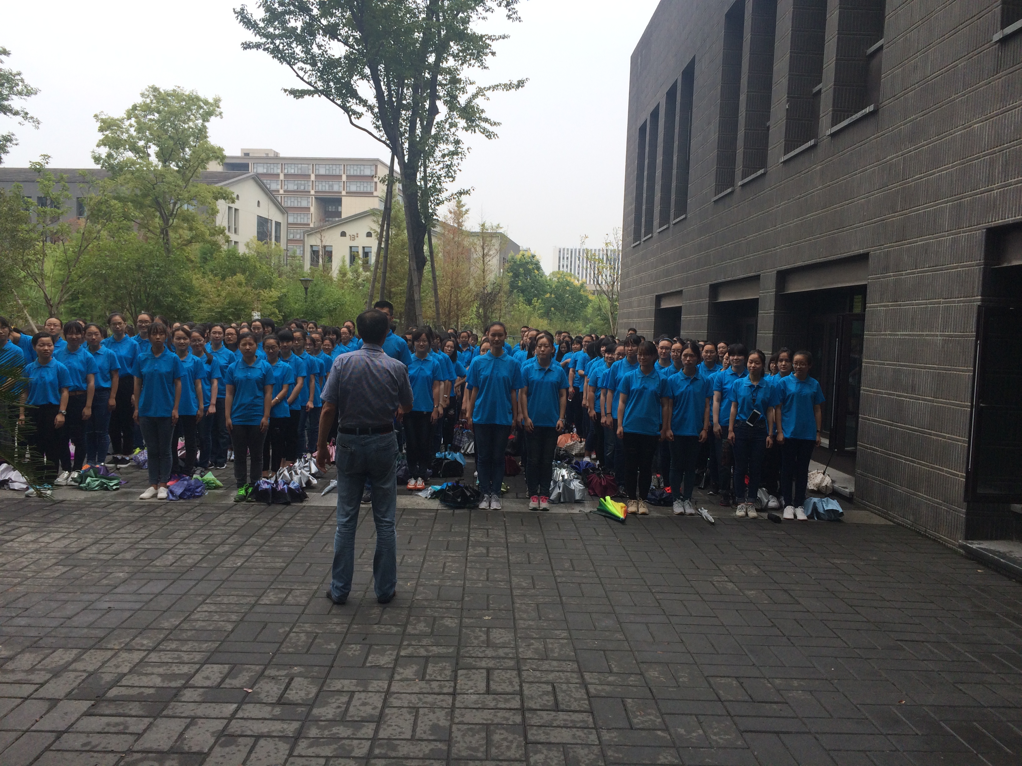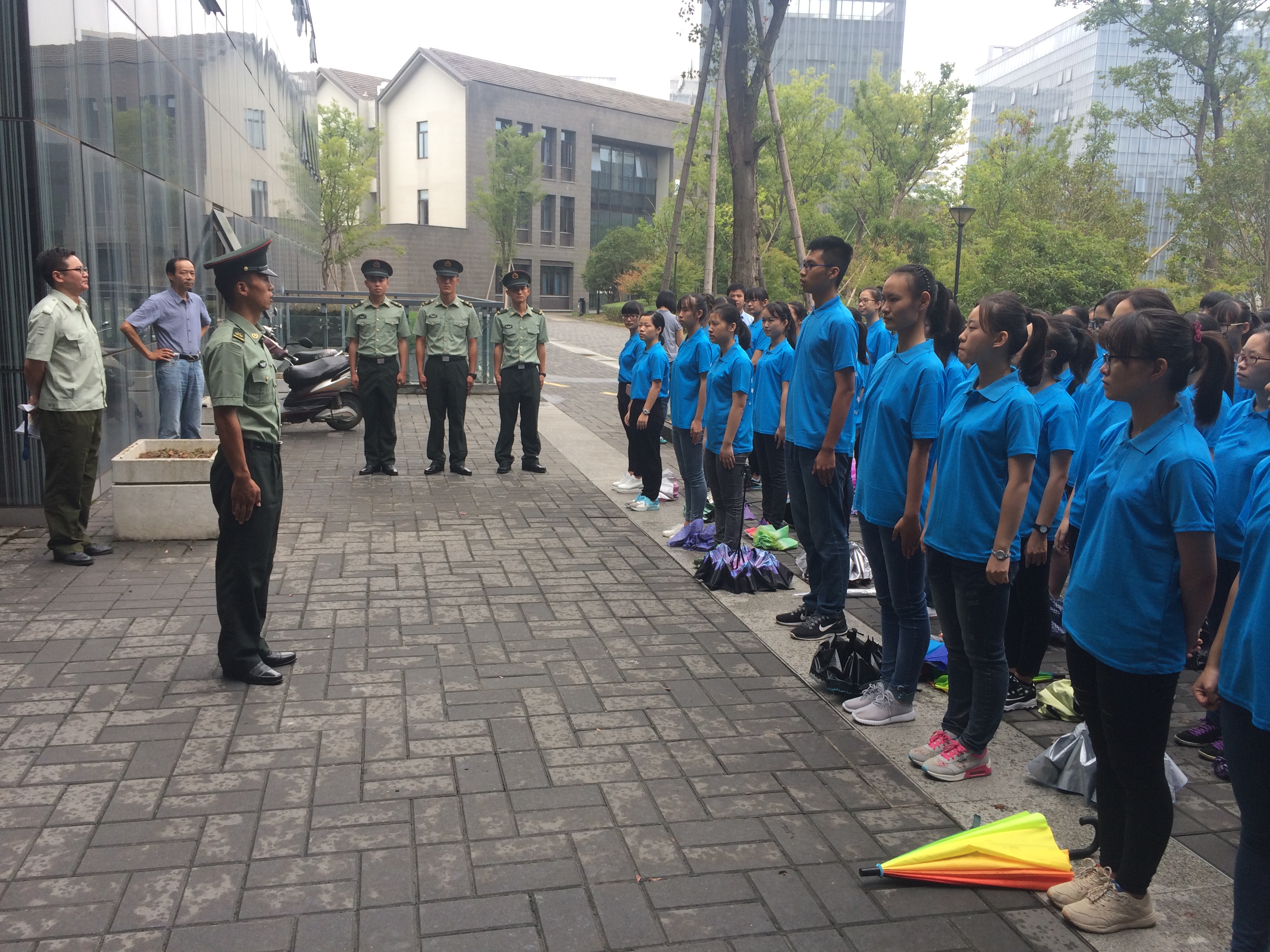 9月14日下午3点,欧美色情 在恕园23号楼前召开军训动员大会,2016级辅导员陈飞主持大会。