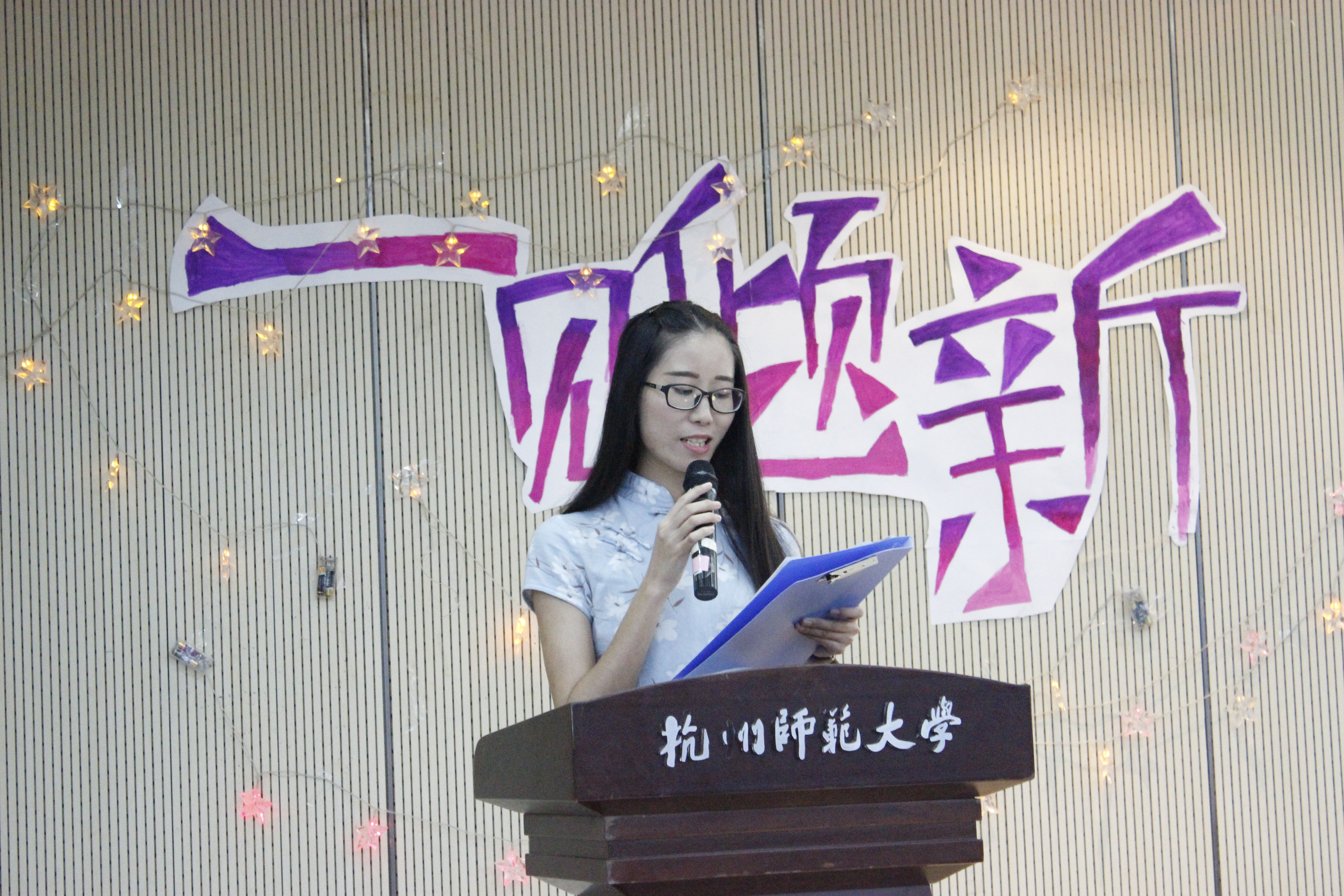 2016级本科代表和研究生代表分别发言。本科生代表陈昕珂说,尽管入学只有10天,但已感受到了学院老师、学长们的关爱和同学们的团结。对于即将面对的大学生活,希望每位风华正茂的人文学子都能保持激情,都能以勤慎诚恕、博雅精进的校训和大气开放、和谐高远、博学笃行、止于止善的院训来自我鞭策,在大学崭新的舞台上展现多姿的风采,书写学院新的辉煌。研究生代表姜胜君发言中认为,对于研究生生活,应做到修道立德,固守本心,脚踏实地钻研学问,独立思考与判断以及心系天下,树立全局观念。祝愿每位人文学子,都能养成好读书的好习惯,读好书的辨别力,会读书的好方法,学有所思,思有所悟,悟有所行,行有所成。