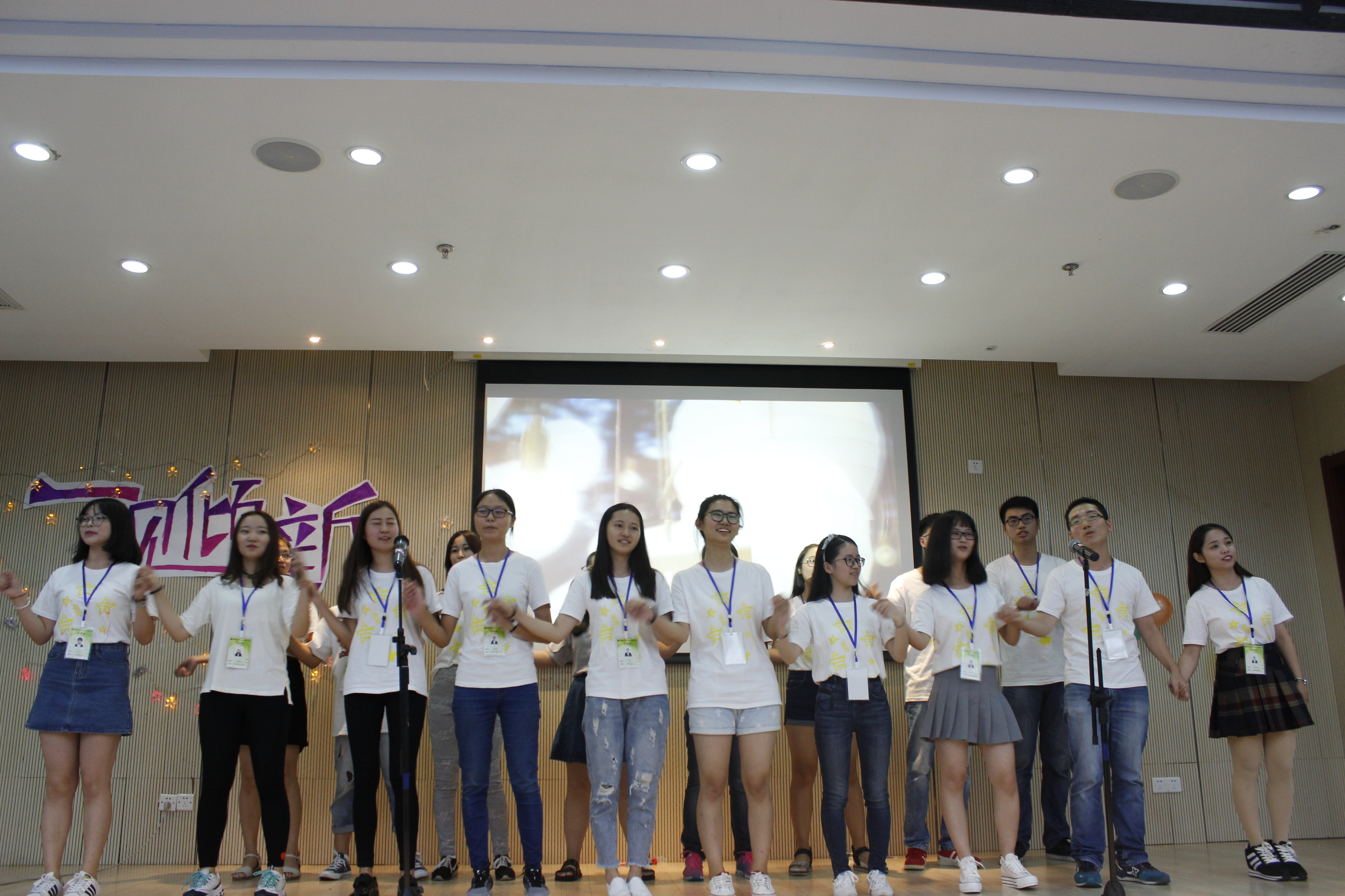 开学典礼后的迎新晚会,学院6大品牌社团为新生献上了独特的社团节目,新生们也以歌曲串烧、舞蹈串烧、电子琴四手联弹、话剧和钢伴朗诵,展现2016级新生朝气蓬勃,才华横溢的形象。全场观众自发互动,以有节奏的拍子,呼应各类表演,场面十分暖人。团委学生会成员集体歌唱《爱因为在心中》,为整场晚会画上圆满句号。