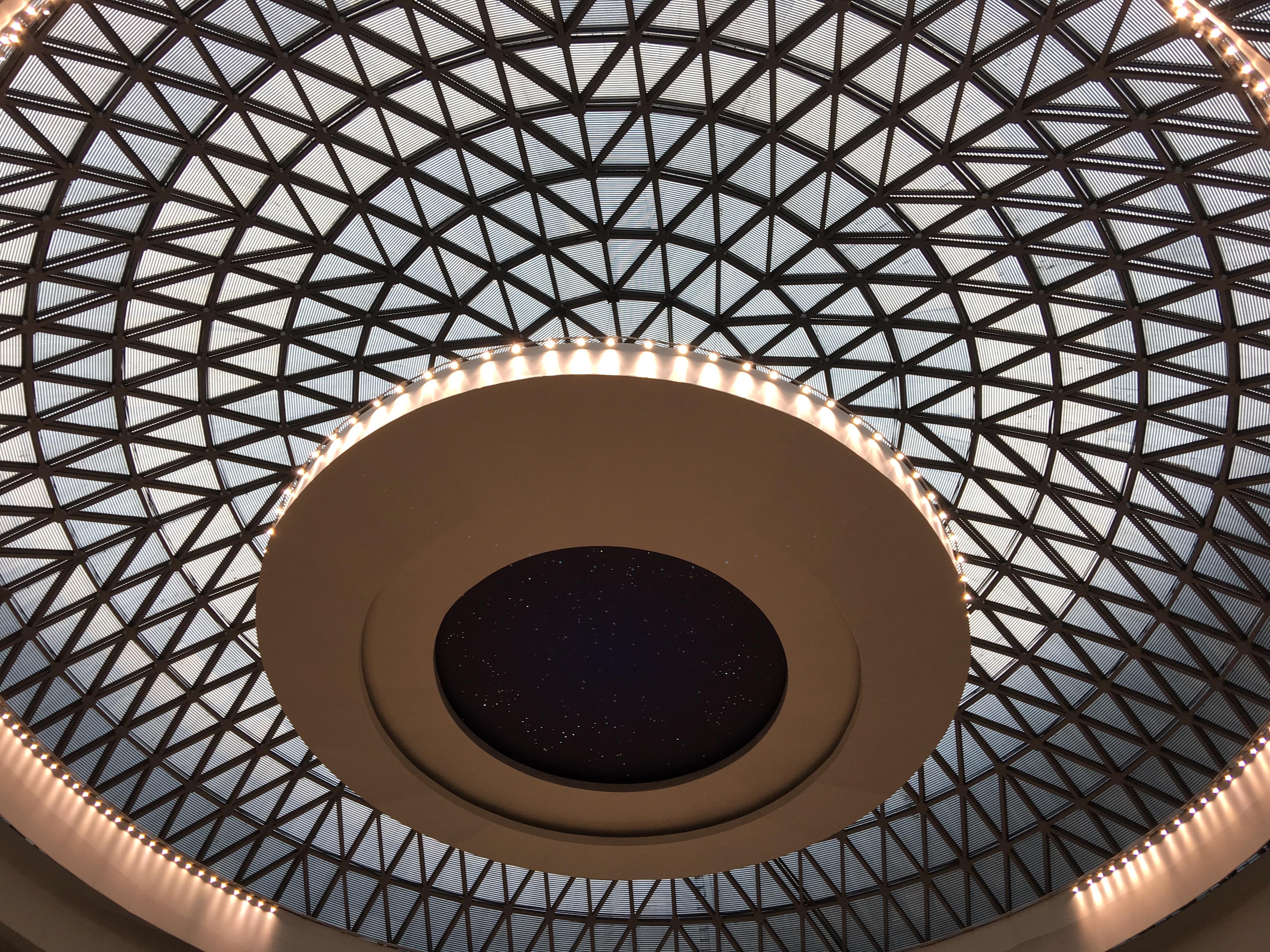 最后到达最顶层,那就是令人瞩目的空中花园之景,作为宴客之地,除了向世人展示江南的特色,24块屏风所代表的24节气以及头顶上的“星空”,也充分体现了环保精神。