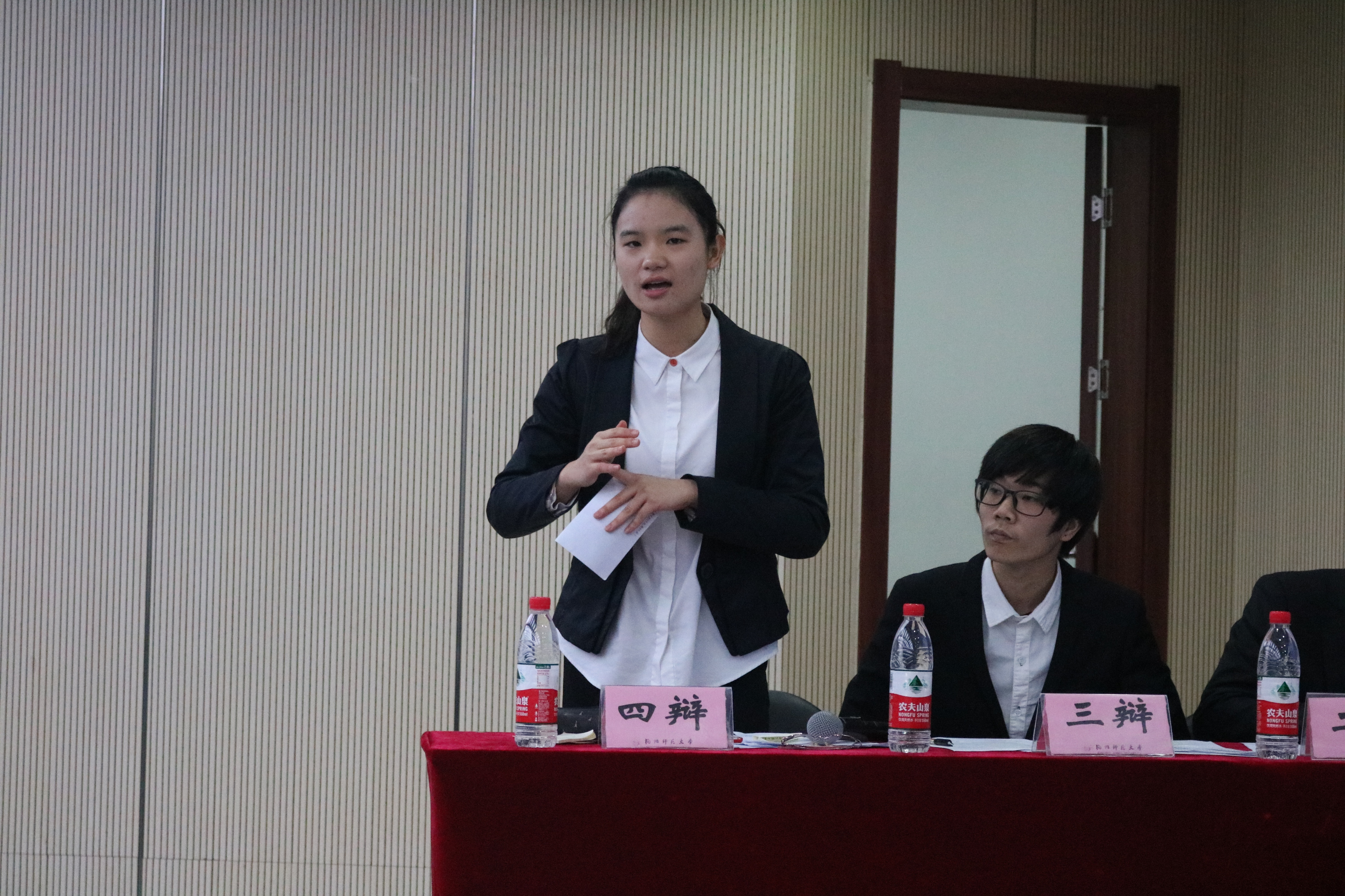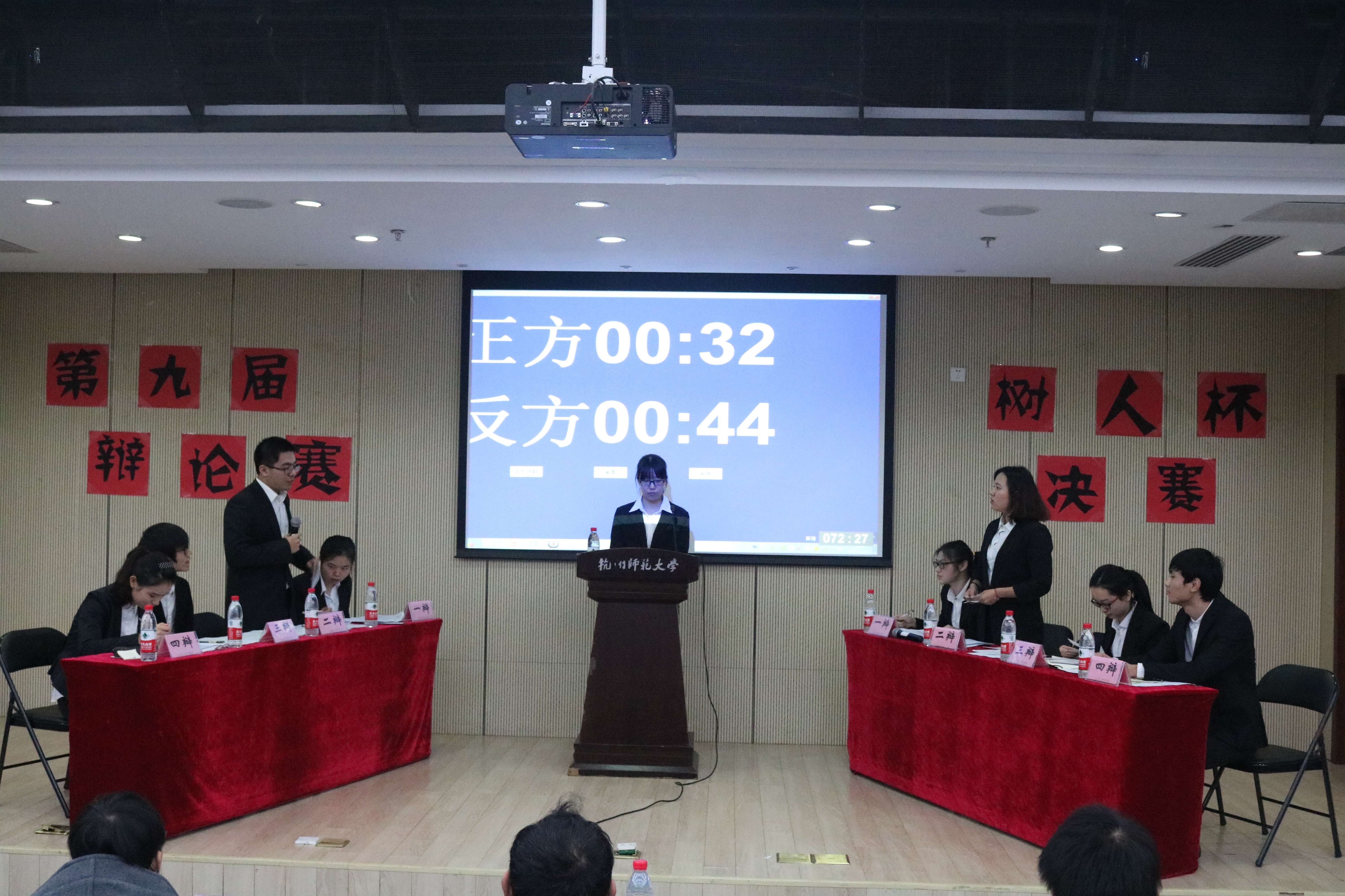 12月14日下午,杭州师范大学第九届树人杯辩论赛决赛落下帷幕,以历史141鲁春梅、谢珂阳、周佳勇和中文142胡启照组成的辩论队获得冠军。