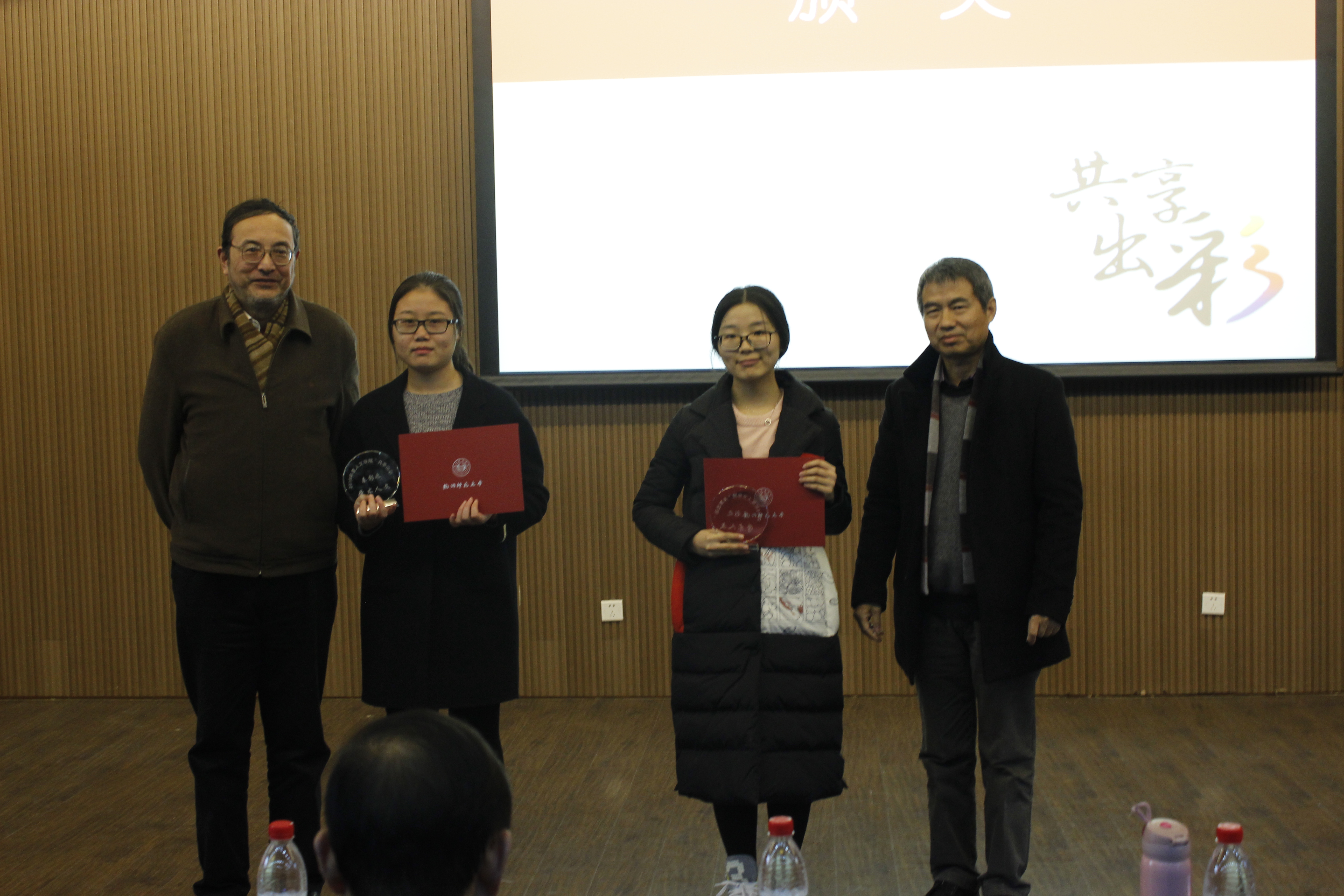 陈斯风老师和丁贤勇老师为浙江省师范生技能大赛的获得者颁奖