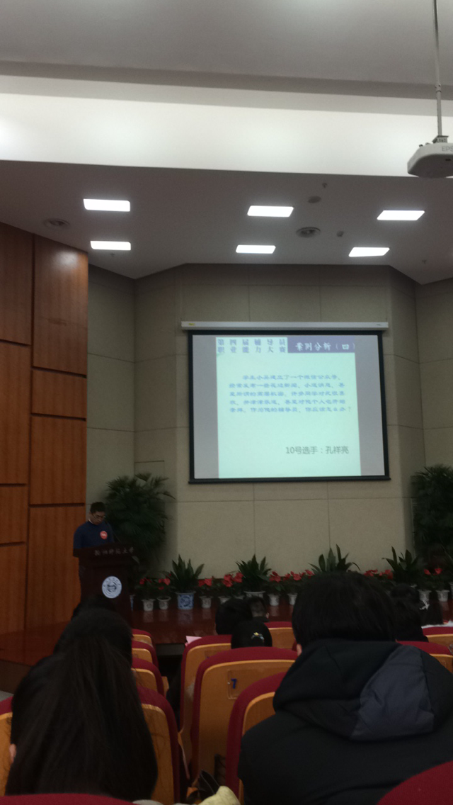 第四届辅导员职业能力大赛分为初赛和复赛。初赛全校辅导员参与,根据笔试成绩排名确定决赛名单。复赛分为案例分析、主题演讲和谈心谈话。在复赛现场,余慧菊老师和孔祥亮老师凭借自己的专业优势和积累的工作经验,精准分析学生问题,流利表达观点立场,适时适度对学生开展引导,给现场的评委和观众留下了深刻的印象。