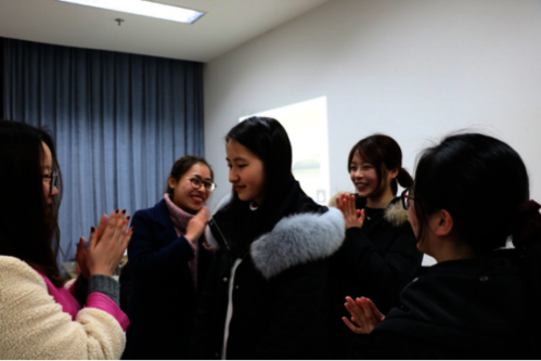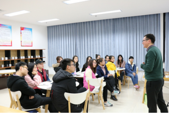 活动伊始,陈飞老师指示大家按人数分组,在短时间里完成小组基本文化的构思,并以“我们的团队”为题轮流上台进行限时一分钟的演讲。随后,陈飞老师独出心裁地组织了“爱的沐浴”小游戏,引导大家对小组成员真情表白,现场气氛顿时活跃起来。接下来,陈飞老师正式切入主题,配合视频为大家介绍了“教练技术”的起源与应用。他指出,教练技术的核心是“对话技术”,即通过对话来激发每个人内在的潜力。针对这一点,陈飞老师从建立亲和关系入手,强调了聆听的三个关键:全身心投入、保持好奇心、抓住关键点。在这个基础上,各小组将讲解的内容渗入实践,进行了简短的对话和记录。陈飞老师还向大家分享了提问的方法和技巧,希望大家多问“什么”,在提问中尽可能包含强有力的假设,并带着明确的目标导向关注现在和未来,引导对话者的行动。除此之外,陈飞老师还对“先跟后带法”和“上堆下切法”进行了简单清晰的介绍,在“不否定、不批评、不对抗”的原则中引出了伙伴型团队的四个基本信念。