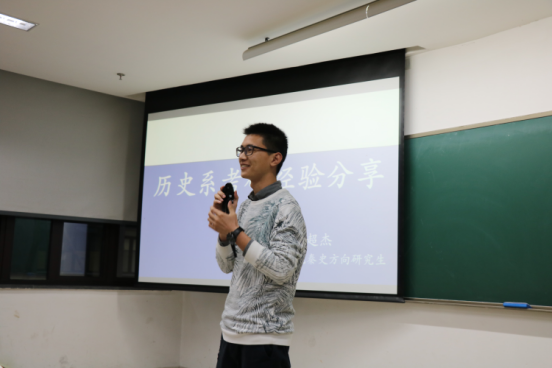 4月9日晚18点,追寻学长智慧系列活动之考研经验分享会在恕园12号楼105举行。来自历史131班的鲁超杰学长(现已顺利考取四川大学先秦史方向研究生)在分享了历史方向的考研经验。