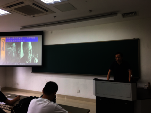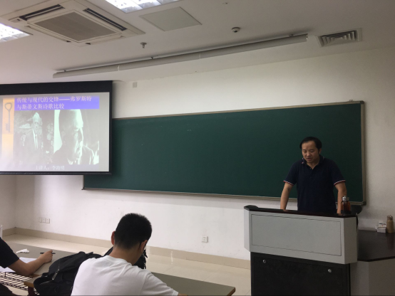 5月31日下午两点,在恕园12号楼306室,由李海明老师主讲的弗罗斯特与斯蒂文斯诗歌比较讲座如期举行。