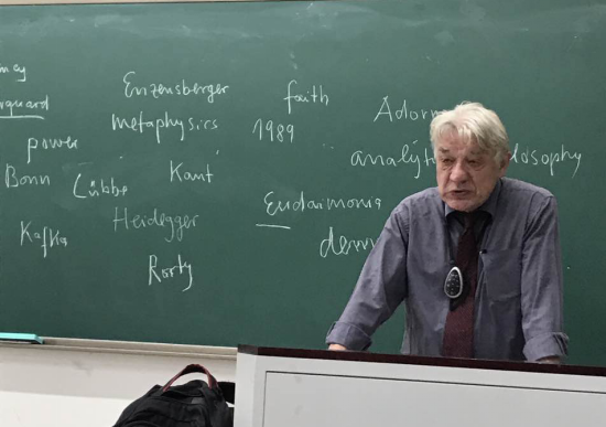 近日,著名汉学家、翻译家、作家沃尔夫冈·顾彬应邀赴我校作了多场讲座,就有关西方哲学和翻译学等问题与我校师生进行了深入的探讨。德国波恩大学汉学系教授顾彬,是欧洲最著名的汉学家之一,以中国古典文学、中国现当代文学和中国思想史为主要研究领域,主要的作品和译著有《中国诗歌史》、《二十世纪中国文学史》、《鲁迅选集》六卷本等。同时,顾彬教授还是德国翻译家协会及德国作家协会成员。2013年,因其“在翻译领域做出的杰出成就”,被德意志语言和文学科学院授予约翰·海因里希·沃斯奖,此奖为德国翻译界的最高奖。
