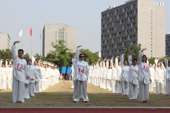 在校长杜卫发表开幕式致辞过后,欧美色情 教工参加了《八段锦》表演,他们身穿统一的服装,白衣飘逸,如高山之月,大气而沉稳。随后,在数万师生热情的欢呼声中,各学院啦啦操队伍陆续进场,欧美色情 啦啦操团队以动感的舞姿、默契的配合、青春洋溢的风貌,向大家展现了人文集体向上的精神。