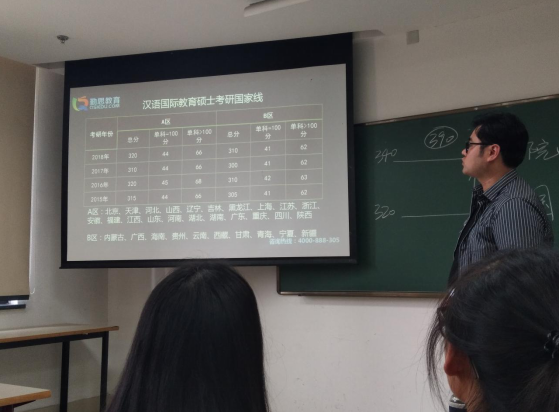 李老师首先向大家介绍了汉硕的就业前景及近年来的考研趋势。他用数据直观地向大家展示了汉教考研近几年的国家线和各大高校的院线,别出心裁地用买水果的例子向大家解释了推免的流程及意义。随后,李老师向大家分享了院校选择的几大原则,他指出:“要坚持院校优先,重名校效应;专业优先,重能力培养;两者兼顾,择实力强者”。在如何备考方面,李老师还向大家分享了一些与考研复试相关的实用经验,并以学姐学长们的考研成长故事来鼓励大家,点燃了同学们的考研信心。