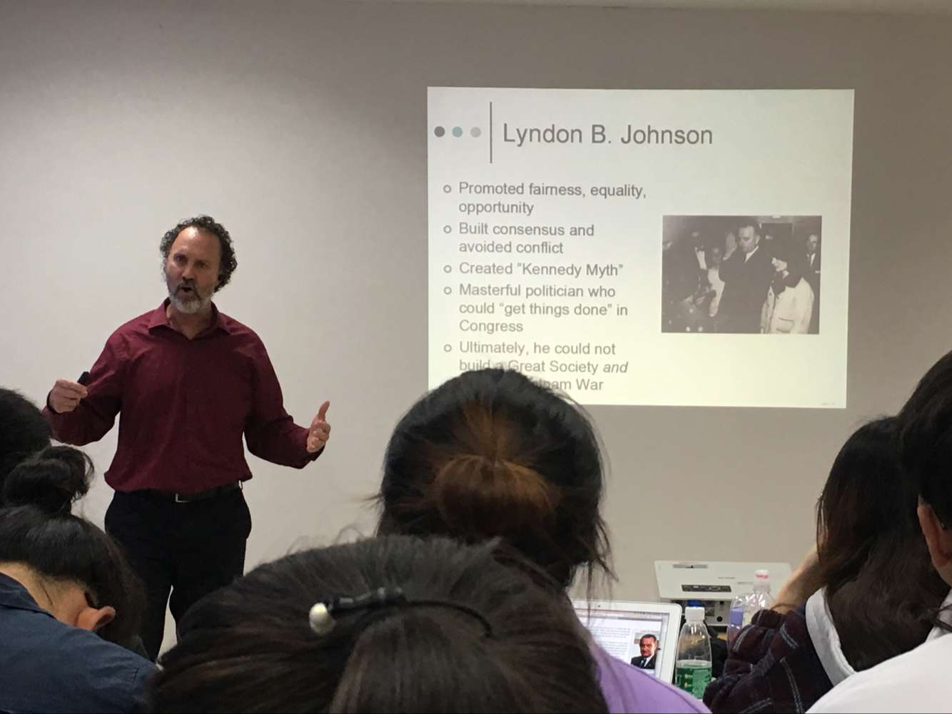 5月23日下午,美国北卡罗来纳大学彭布洛克分校副校长,美国历史学专业博士斯科特·比林斯特教授在恕园23号楼316教室为大家带来了一场主题为“America in the 1960s”(20世纪60年代的美国)的讲座,同学们对此热情高涨,场内座无虚席。