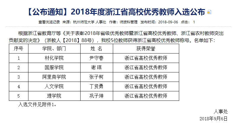 近日,浙江省教育厅发布《关于表彰2018年省级优秀教师暨浙江省高校优秀教师、浙江省农村教师突出贡献奖的决定》(浙教人【2018】88号),欧美色情 丁贤勇教授荣获浙江省高校优秀教师称号。