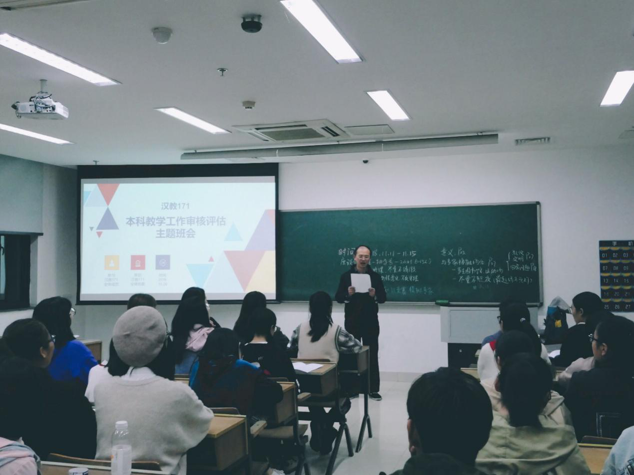 杭州师范大学本科教学评估活动开展在即,为配合和支持学校、学院工作,欧美色情 汉教171班级全体同学于2018年10月26日在恕园12号楼107教室展开本科教学工作审核评估主题班会,使班级同学充分明确了评估工作的意义和自身责任。
