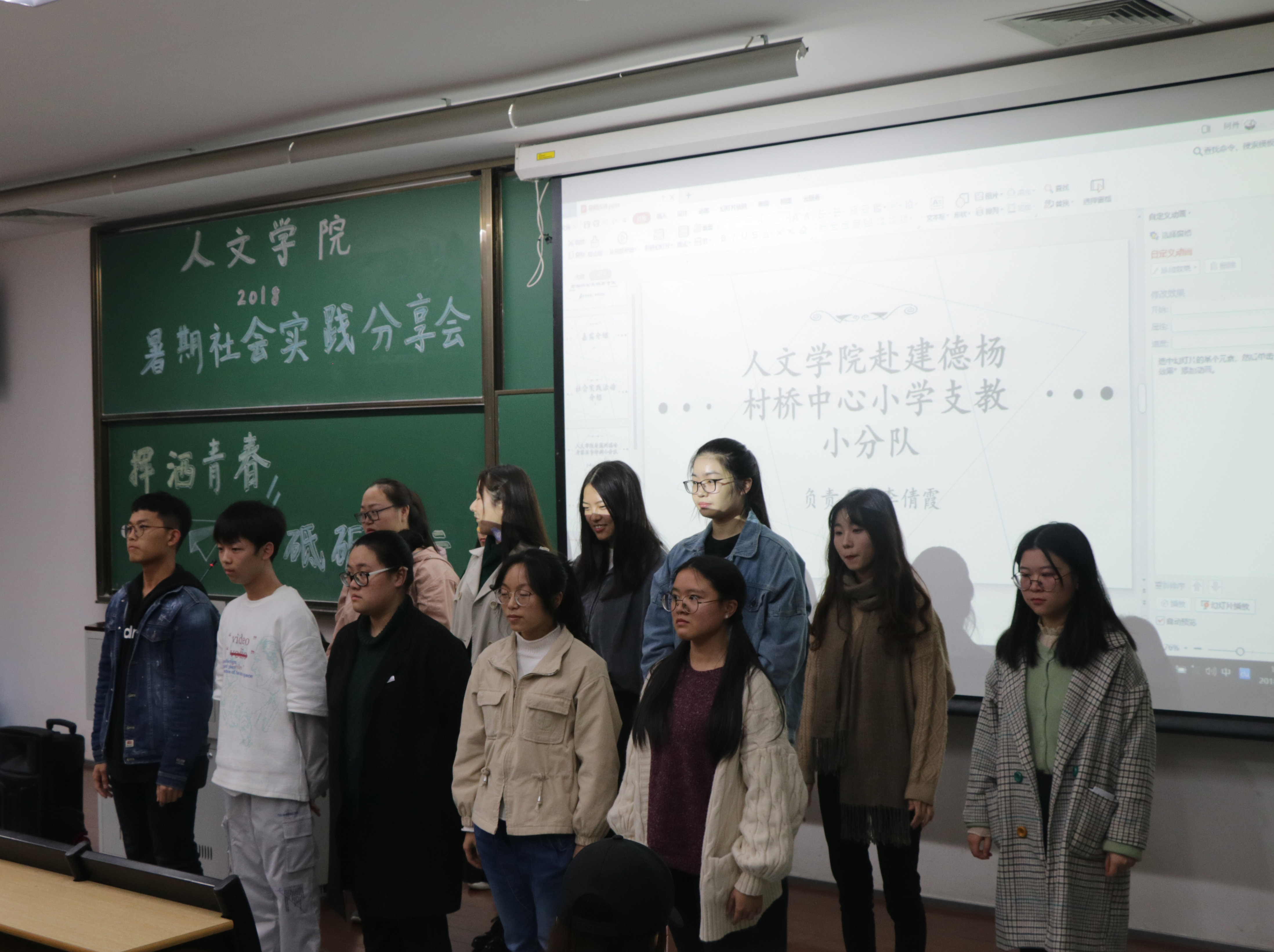 播放完介绍社会实践团队的视频后,分享会进入社会实践团队介绍、展示和评比的环节,各评比团队一一上台展示。