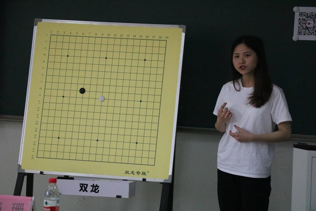 宣讲会上,钱珊老师发表讲话。她指出,棋社培训专业而规范,这对提高同学们能力具有帮助,也为大家未来的就业提供了良好的机会。她表示,希望在座可以借此机会对自己未来有所思考和规划,为自己大四毕业就业多谋一份选择。主讲人彭华同学简要介绍了目前国内围棋教学行业的就业前景,同时也分析了目前大学生择业的严峻现状。通过详细的数据分析,彭华同学清晰地阐明了围棋教师的职业优势,包括其薪资水平及发展前景。此外,她表示,弈圆围棋棋社将根据人才自身情况提供不同的岗位,使大家发挥个人特长。讲座上,卜树慧同学现场进行了简单的教学讲解,第二期优秀学员代表、外国语学院的刘倩同学向大家分享了自己在弈圆围棋棋社的学习经历。