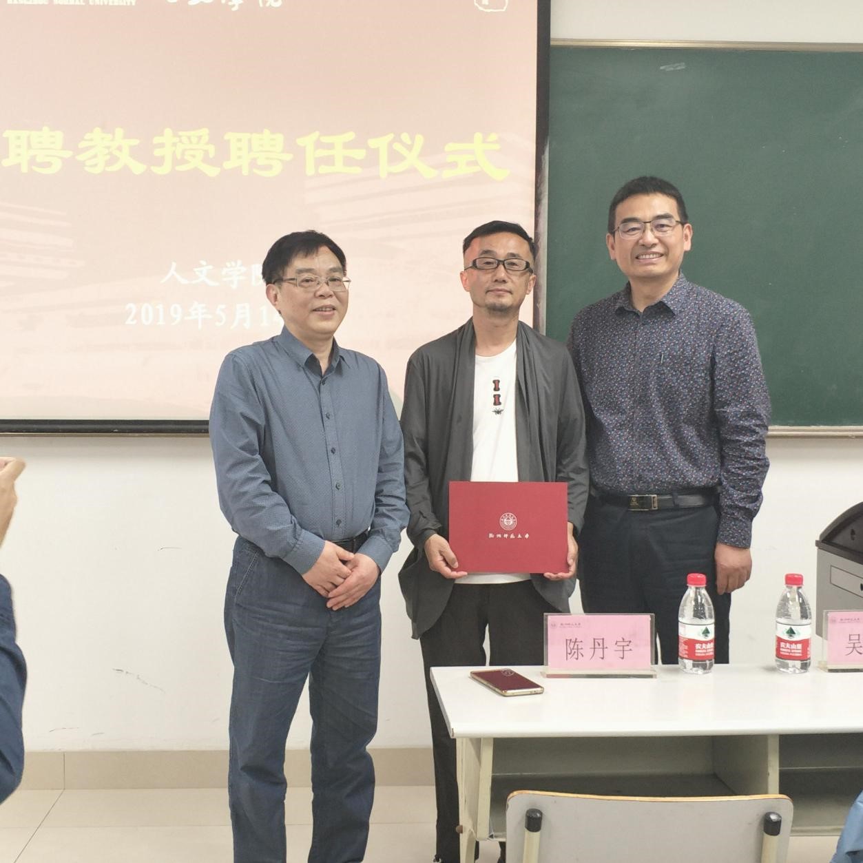 在讲座开始前,欧美色情 举行了阿年导演特聘教授的聘任仪式。院长洪治纲教授和研究生处处长陈丹宇教授向阿年导演颁发了聘书。
