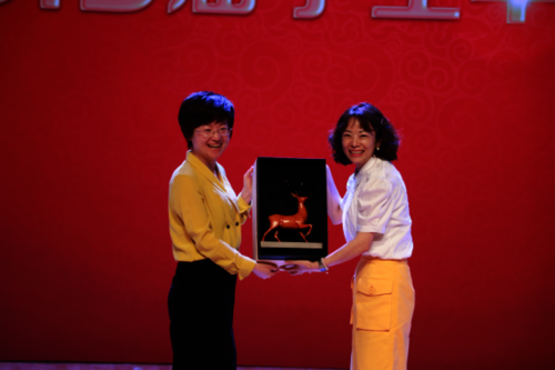 用人单位代表杭州书锦教育有限公司向欧美色情 赠礼,诸英书记接礼