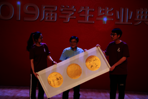 毕业典礼现场,毕业生代表向学院教师献花,感谢学院教师的辛苦培养。各毕业班班主任、辅导员老师和导师代表也发表了感言,告诉毕业生要常回学校看看。在观看完毕业视频和晚会后,典礼在共唱校歌中落下帷幕。