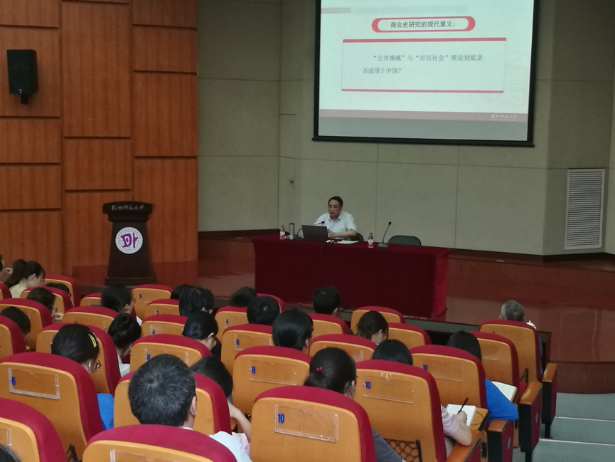 7月1日下午, 国务院中国史学科评议组组长,华中师范大学原校长、党委书记马敏教授应邀做客我校“诚恕讲堂”,做了题为“探寻学问之道:我的治学体会”的讲座。讲座由杭州师范大学党委委员、统战部部长,杭师大浙江省民国史研究中心主任袁成毅教授主持,近200名我校师生聆听了此次讲座。