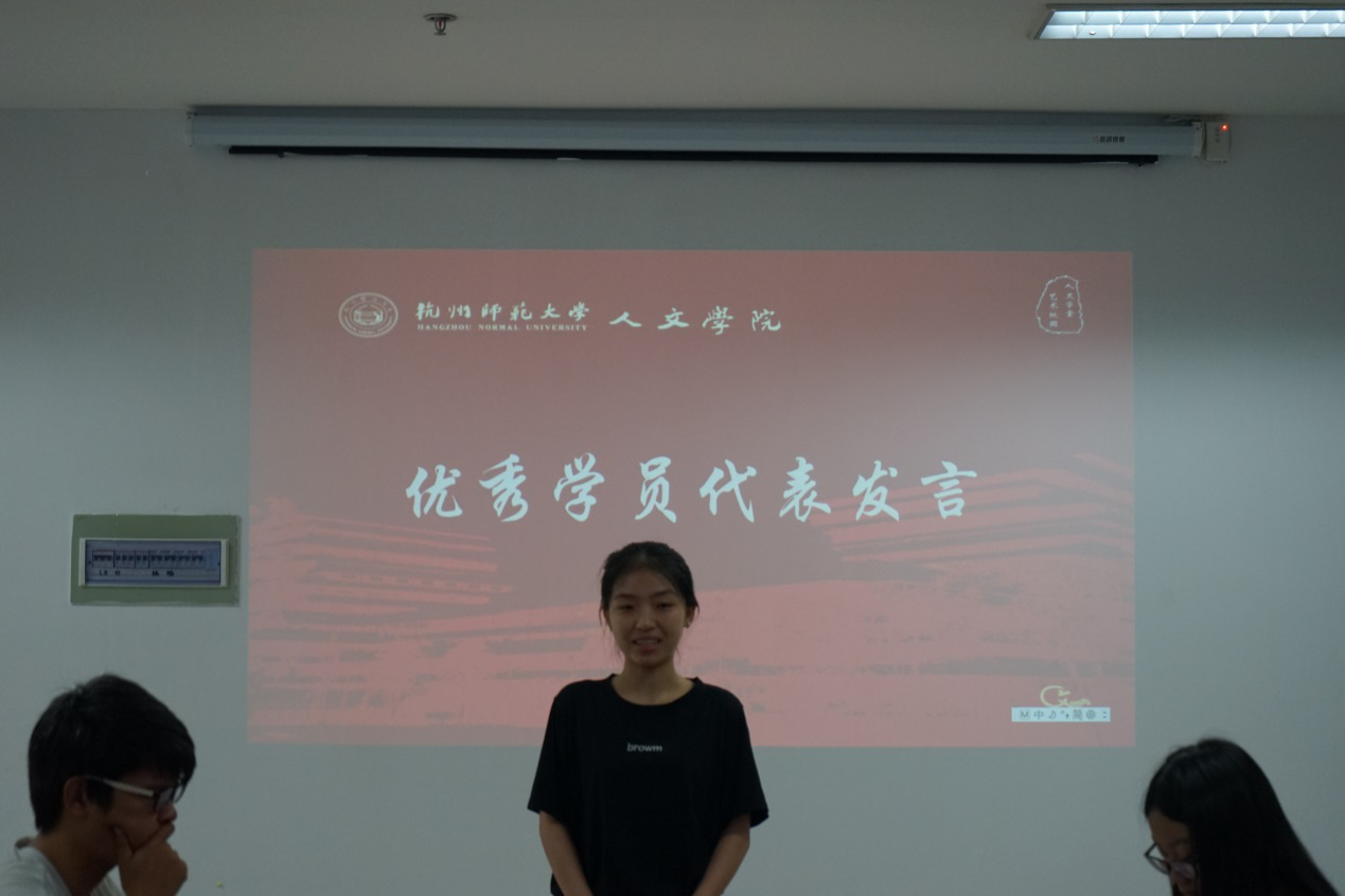 典礼现场还进行了第39期司南人才学院学生干部培训班优秀学员表彰仪式,曹书记上台为他们颁发了奖状,表彰了他们在培训中的积极参与和出彩表现。来自中文175的优秀学员夏慧慧代表全体学员发言,她向提供培训的老师、学长学姐们表示衷心感谢。她同时指出,司南人才学院的培训很大程度上弥补了课堂教学仅传授理论知识的局限,带给了她“收获”“提升”和“幸福”,助长了她的“灵性”“智慧”“热情”和“坚定”,鼓舞着她将这些珍贵品质应用到学习、提升和践行中去。