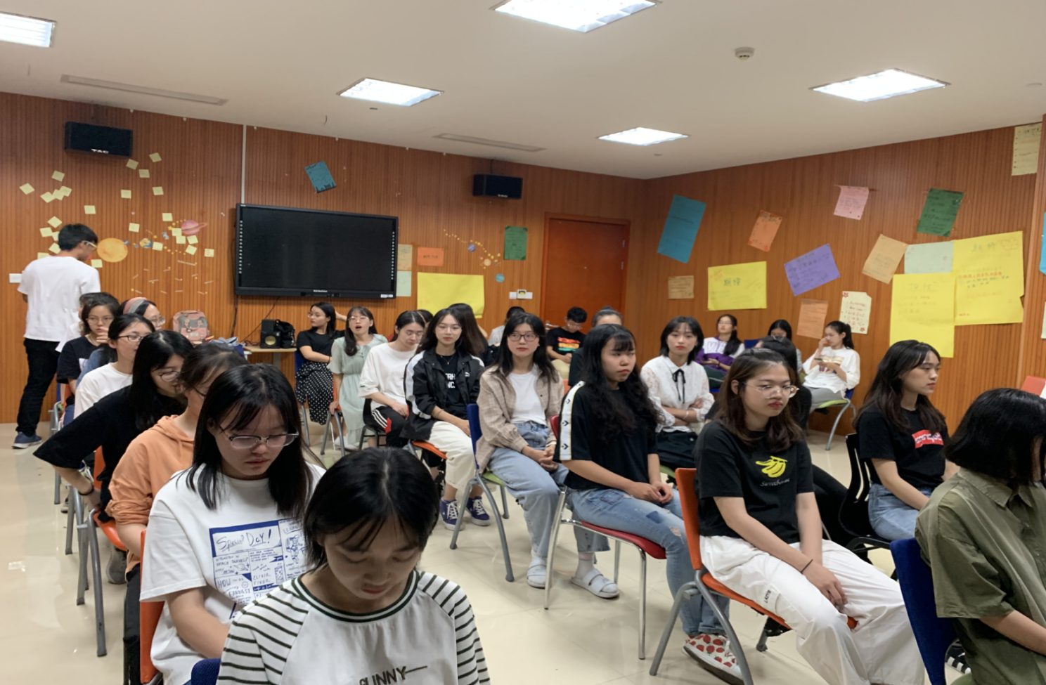 2019年9月27日晚上8点,欧美色情 中文182班国庆主题班会在师生活动中心举行。