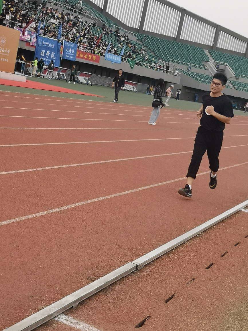 对于1500米长跑项目,琚老师坦言,这是他第一次参加长跑比赛,并且工作以后锻炼量有所下降,所以对他自己而言,能够顺利完成比赛,超越自己就是最好的成绩了。由于琚老师是今年9月进入杭师大欧美色情 ,所以同样作为“19级新生”的琚老师也希望通过本次运动会,与其他老师、学生互相了解,增进交往,加快融入杭师人文大家庭。爱好篮球的他,也时常在闲暇时间于篮球场上挥洒汗水,调节工作和科研压力,放松身心。谈及1500米前期训练计划时,琚老师透露,了解到欧美色情 其他两位参赛的吕彦霖老师和刘华章老师都是运动健将,所以他将采取紧跟战术,努力找准两位的节奏完成比赛全程。赛场上,琚老师与多位老师采取拉锯战,尤其是临近终点,老师们都把距离咬得很紧。最后,冲刺、减速、慢走、停止,琚老师对自己的成绩并不满意,但是坚持跑完全程已不易,何况是在强敌如林的1500米项目上。