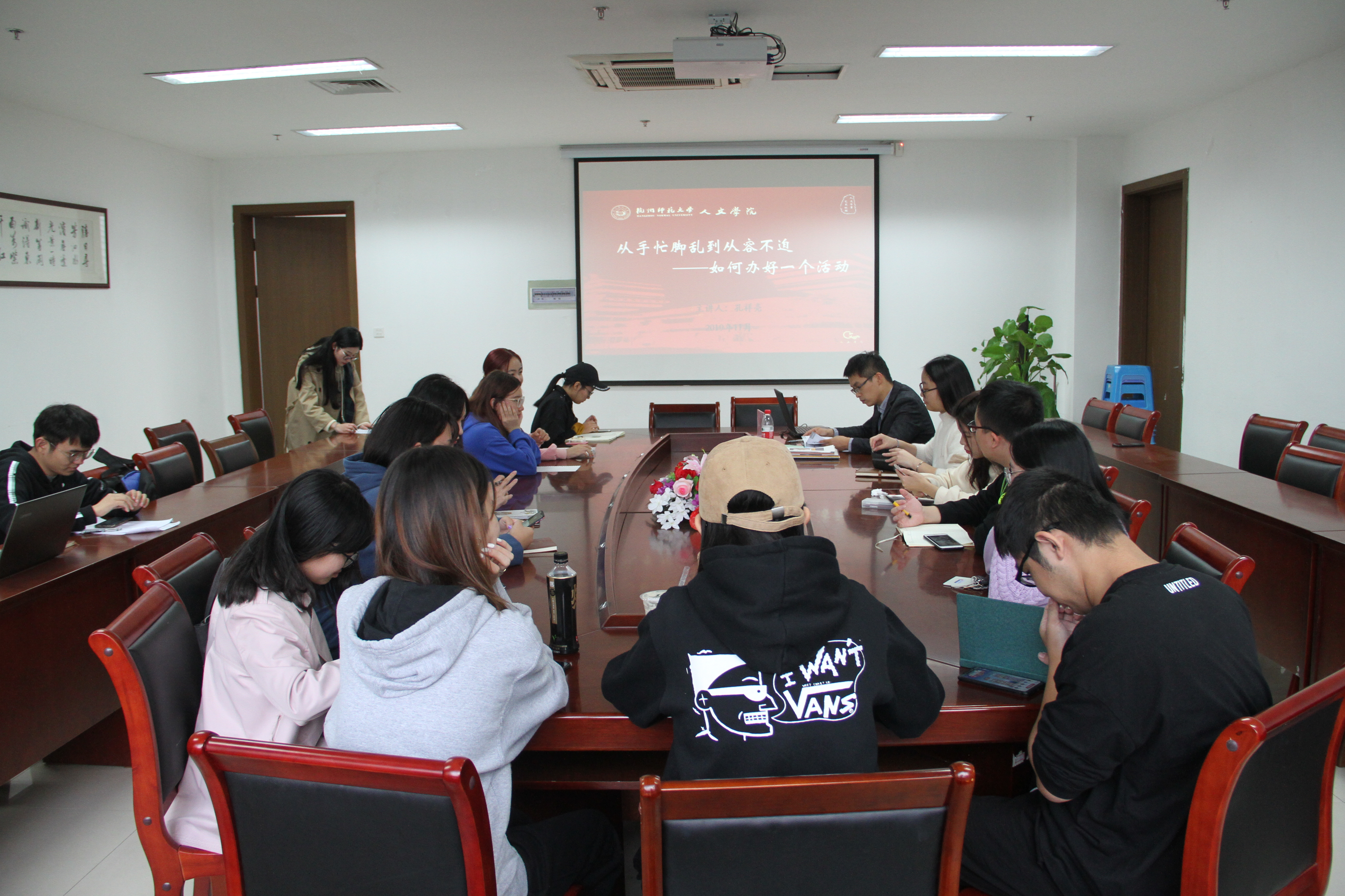 11月3日下午,欧美色情 第40期司南人才学院第一课“从手忙脚乱到从容不迫——如何办好一个活动”于恕园23-312顺利开展。学院辅导员孔祥亮担任本次培训主讲人,辅导员刘华章出席培训,学生会部分部长参与培训。