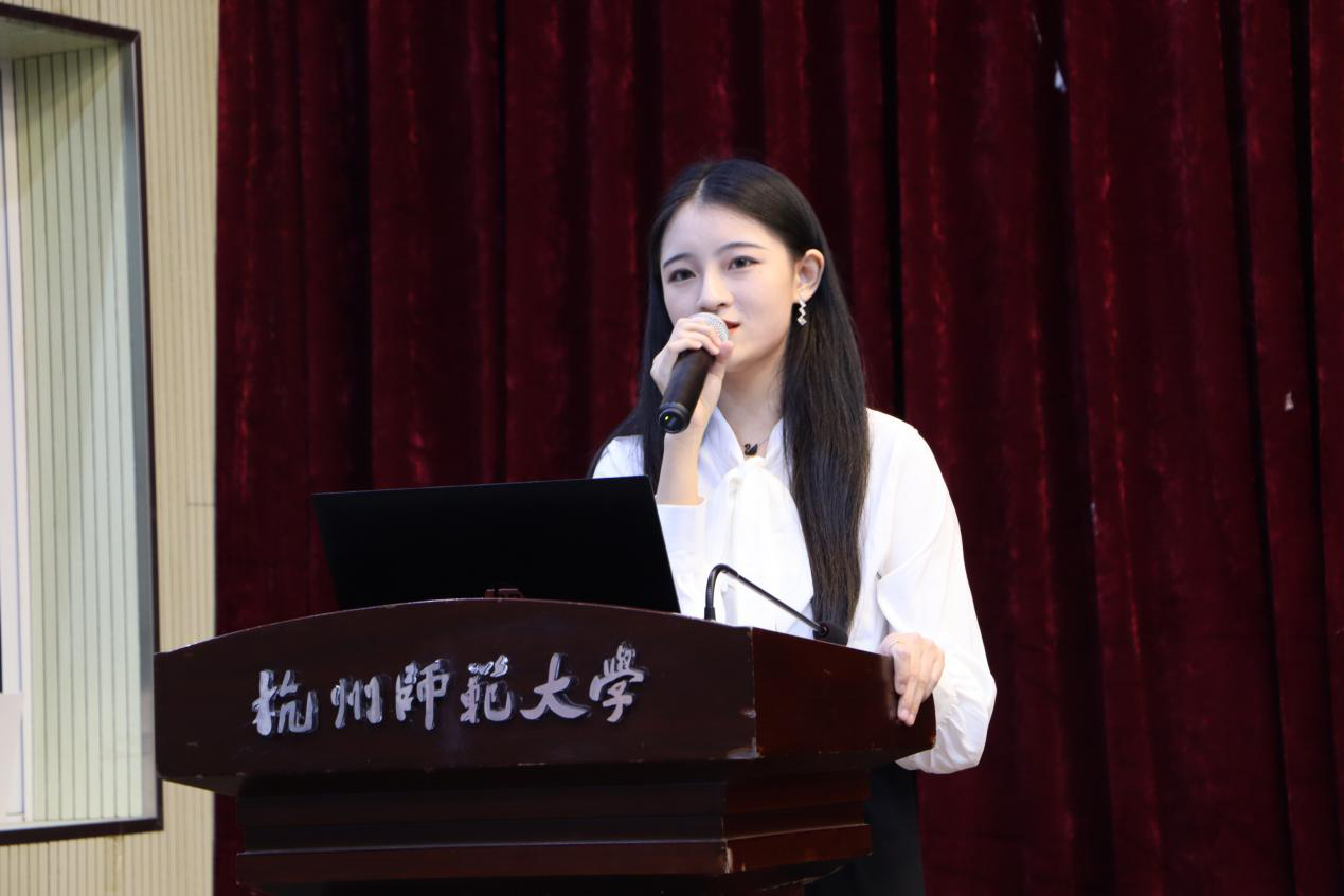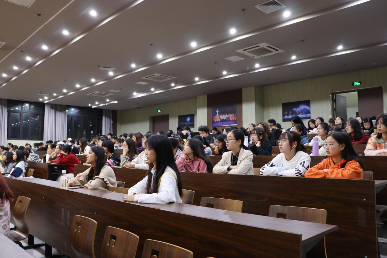 讲座伊始,杨迪老师提出“我们缘何越出国,越爱国”的疑问,以“一件事、一群人、一首歌”为切入点,结合自身真实的出国经历,展示了落叶归根的爱国情怀和与祖国共情共力的深刻情养,最终给出了答案——“爱国主义是我们和国家最深层、最根本、最永恒的情怀”。接着,王莹老师围绕“奉献点亮青春”这一主题,以身边人物和榜样人物为具体例子,向活动参与者展示了一个庞大宏伟的奉献者群像。最后,她以习近平总书记“用青春之我创造青春之中国”结尾,鼓励青年趁青春,勇敢去奉献。而优秀的学生干部同样给出了自己的青春宣讲,讲述她们的工作经历、分享工作经验,鼓励在座的同学们去参与、去奉献,为他们的青春引路。