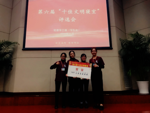 11月28日晚,杭州师范大学第六届 “十佳文明寝室”的评选活动在恕园七号楼200座落下帷幕,欧美色情 博文苑4-203寝室(成员为中文172陈麟、曹艳艳、陈思羽和陈思思四位同学)代表欧美色情 参加校“十佳文明寝室”评比,并荣获校“十佳”的称号。