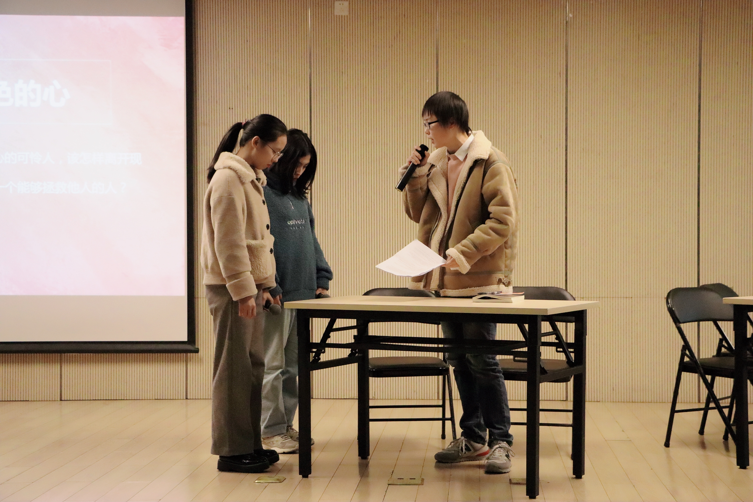 经过剧本选拔,共有四个节目参与本次表演:《灰色的心》从一个女生因为抑郁而将负面影响传播给他人的事件入手,讲述了她以旁人受到伤害为代价,终于主动去改变自己的故事。《找寻自己,不做讨好型》用倒叙的方式讲述了主角小易在讨好别人的泥塘中苦苦挣扎,最终在不断的尝试中获得新生的故事。《善意否定论》剥开“宁宁”自卑和自我否定的内心,将自卑心理的成因淋漓尽致地袒露出来:一次次看似是出于善意的“为你好”的否定,都在把他人一步步推进深渊。《捡垃圾的少女》聚焦个体生命中普遍存在的“自卑”现象,试通过呈现自卑少女林英在人际交往中逐渐褪去保护壳的过程,为每一个人的平凡生活提供一点可能欢喜的路径。