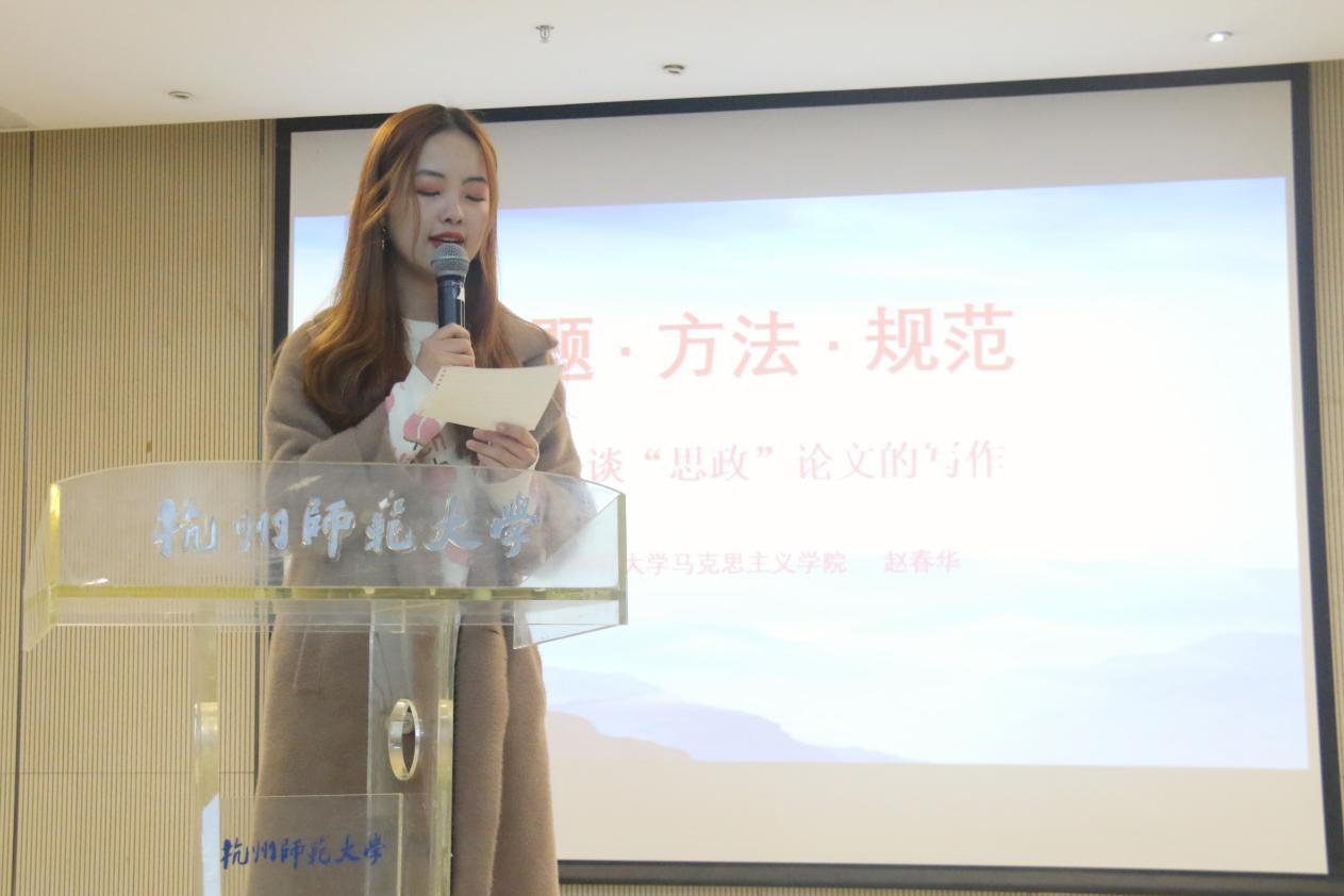 12月18日下午,马克思主义学院赵春华教授在恕园2号楼112教室应邀为欧美色情 学子作题为“选题·方法·规范”的思政论文写作辅导讲座。欧美色情 18级全体同学及院学生会全体干部参加此次讲座,讲座由院学生会主席陈麟主持。