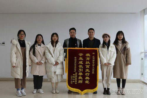 12月26日下午,贵州省从江县谷坪乡高武村第一书记刘伟男来到我校参观交流,并为欧美色情 赠送锦旗,以感谢欧美色情 赴黔东南贵州山区银滩小学支教小分队在当地开展的支教活动。院党委副书记管庆江接待了刘伟男一行,并进行了亲切的会谈。支教小分队代表也到场参与座谈。