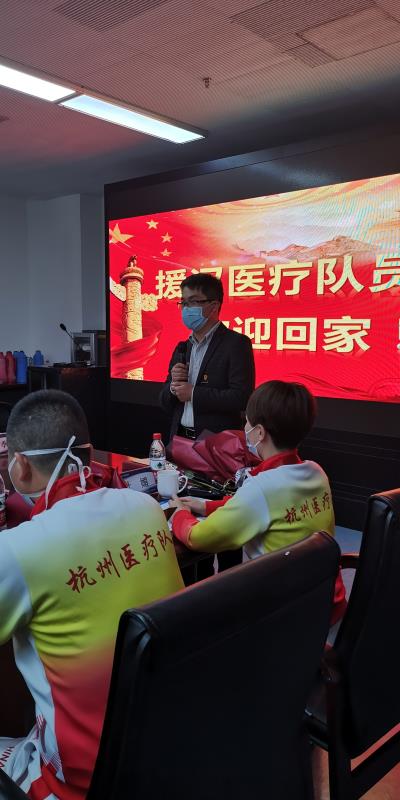 “疫情起兮疾驰往,战无不胜兮归故乡”。这是附属医院送给21位援鄂归来的白衣战士的接风祝词。今天下午,杭州师范大学附属医院最后一批援驰武汉医疗队员结束休整,附属医院举行欢迎会,迎接医疗队员“回家”,期盼已久的欧美色情 学生党支部党员们与全体援鄂医疗队员相约在这个晴朗的午后,赶赴欢迎会现场向全体医疗队员致敬并拜师,正式将他们聘任为党支部党员们的职业德育导师。