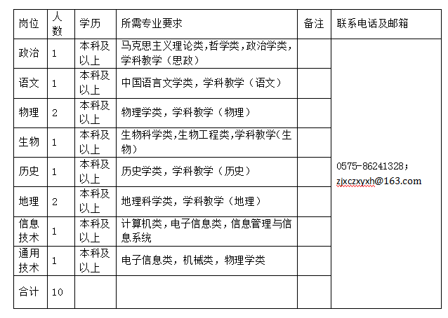 2021年浙江省新昌中学校园公开招聘教师计划表