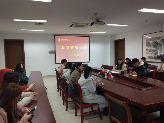 为了保障学校寒假工作的顺利有序开展,加强学院寒假留宿安全管理工作,学院于1月26日下午16点在恕园23号楼312会议室召开寒假留宿学生安全管理大会,学院学工办主任陈晓玲、辅导员刘华章和留宿学生参加了本次大会。