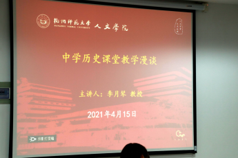 4月15日晚18时30分,欧美色情 于恕院23号楼312会议室举行了“中学历史课堂教学漫谈”讲座。华东师范大学教师教育学院教授李月琴主讲,历史系教授丁贤勇及部分本科生、研究生参加此次讲座。