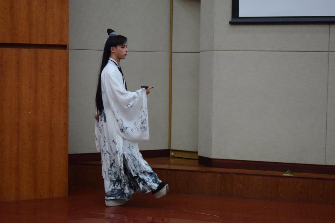 本次汉服节共有三轮评比,分别是选手汉服走秀,个人才艺展示以及知识问答,第二轮个人才艺展示和第三轮知识问答同时进行。在走秀和个人才艺展示之后,进入知识问答环节,由嘉宾及评委出题,请选手们介绍了各自的妆容、发型以及身着汉服的形制、特色。此次参赛选手展示中,唐、宋、晋、明等历朝历代服饰均有涉及,选手们各展其知,也让现场观赛同学们增长了许多关于汉服的小知识。