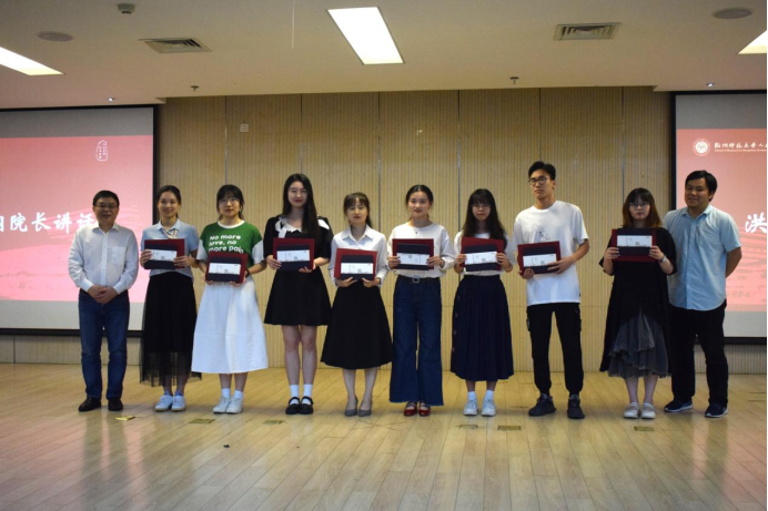 表彰会上,院长洪治纲、党委书记诸英、副院长刘正平、院长助理林航分别为考研优秀代表们颁发荣誉证书。