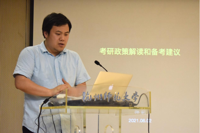 院长助理林航解读了考研政策同时分析了考研形势。林航从今年各校研究生招生录取的比例、复试招收的人数、全国统考与自主命题的区别以及学硕与专硕的利弊分析出发,深刻剖析了未来几年的考研形势。他希望学生们都能够打好学业基础,衡量自身水平,谨慎选择专业,把握机会一举成功。