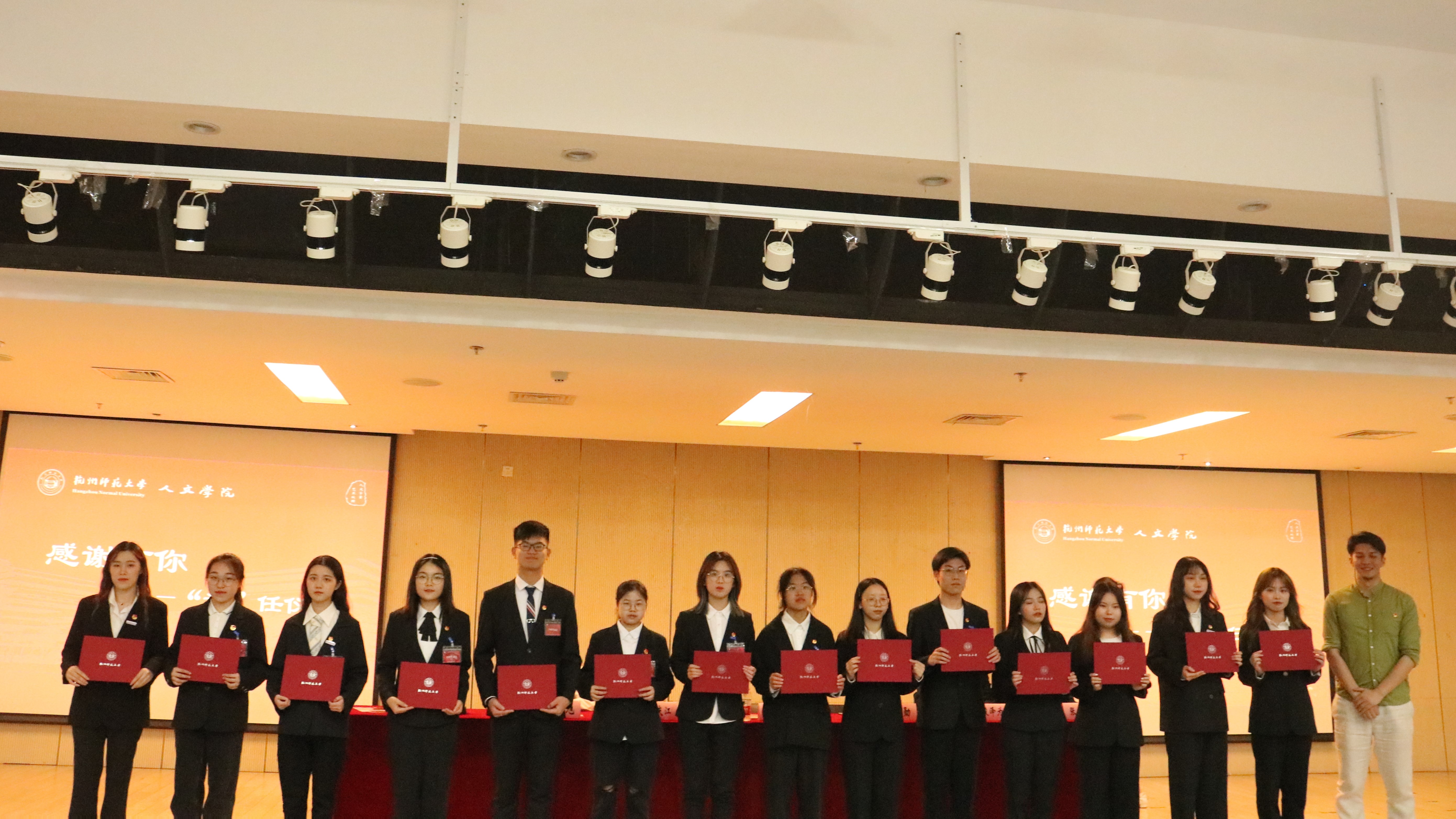 本次大会还举办了“感谢有你”卸任仪式,感谢老一届学生会、研究生会成员恪尽职守,全始全终,以及展现人文学子“聚是一团火,散作满天星”团结他人、脚踏实地的星火精神。会上,还对学院2020-2021学年优秀团干部、优秀团员、优秀学生干部、优秀志愿者等进行了表彰。