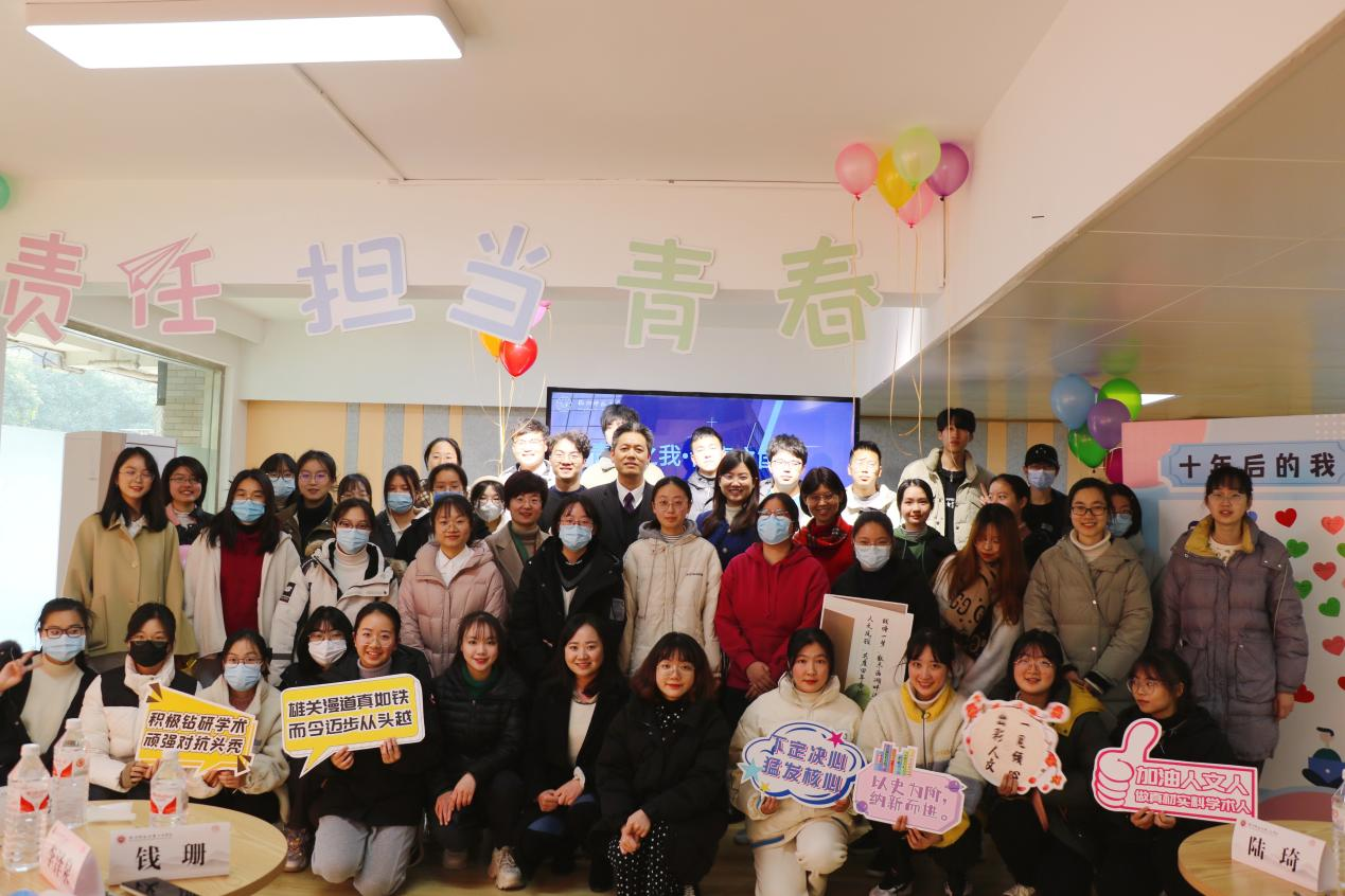 12月29日下午,欧美色情 历史211班在下沙校区大学生成长指导中心举行“青春之我,青春之国家”主题班会。校党委委员、纪委书记李泽泉,院党委书记诸英、党委副书记钱珊、历史211班班主任蔡丹妮及辅导员陆琦、林伊纯一同参加本次班会。