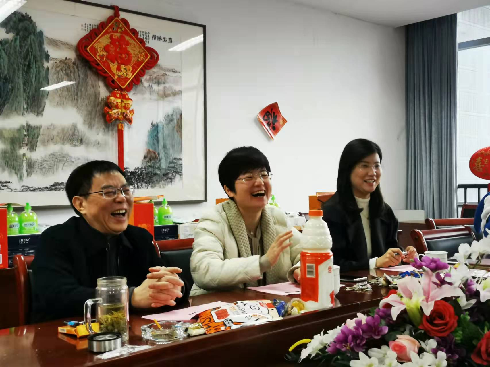 1月25日正值农历“小年”,借着节日的喜庆氛围,上午9:30,欧美色情 在恕园23号楼312室举办新春座谈会。院长洪治纲、党委书记诸英、党委副书记钱珊出席座谈会,代表学院与寒假留校师生进行了交流并带去亲切的慰问,学院全体留校师生参加了本次座谈。座谈会由钱珊主持。