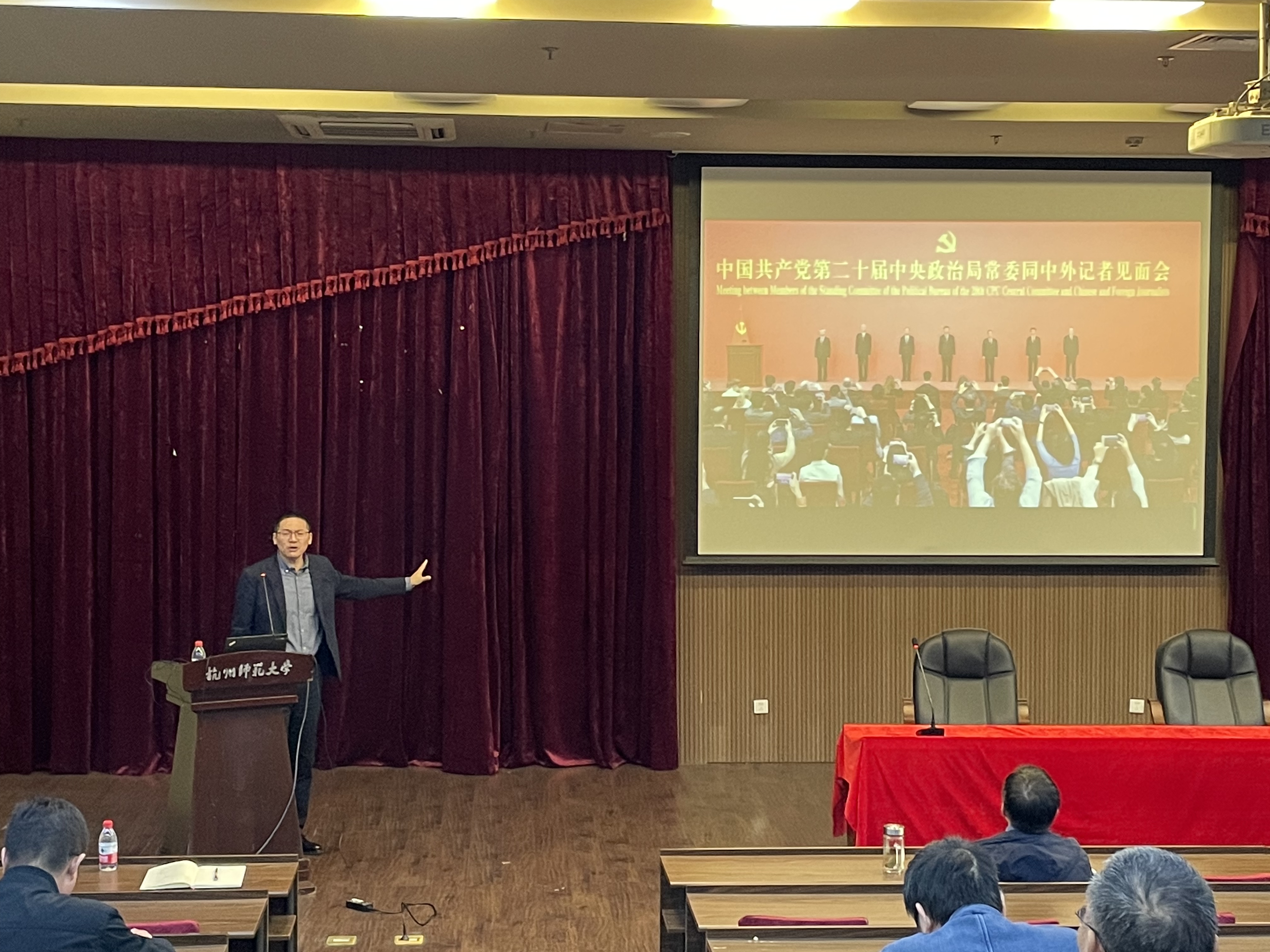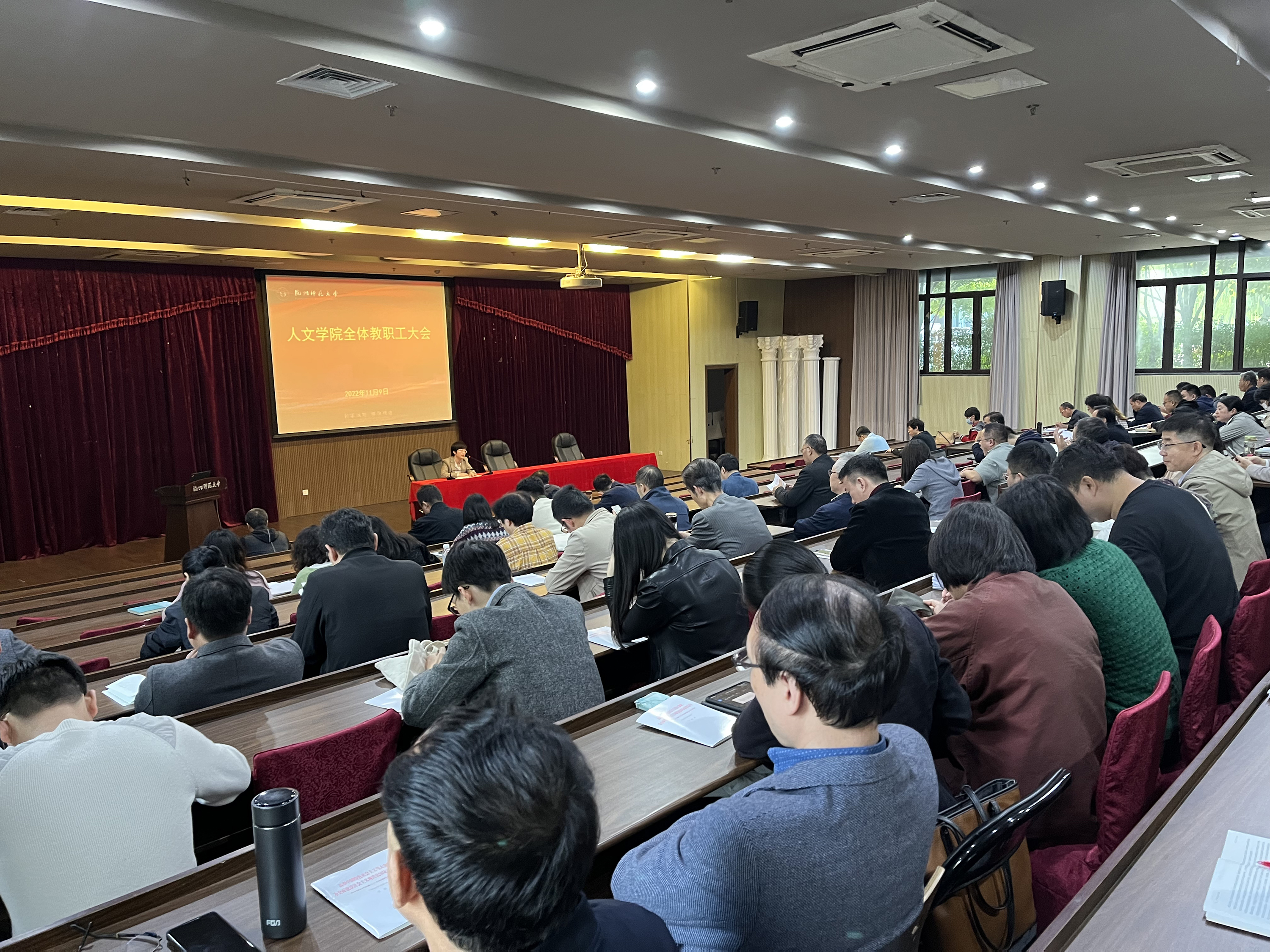 为进一步深入学习宣传贯彻党的二十大精神,11月9日下午,欧美色情 邀请校党委宣传教育讲师团成员、马克思主义学院党委副书记应维华老师作题为“奋楫争先新征程 踔厉奋发谱新篇”的讲座,向学院全体教职员工宣讲党的二十大精神。